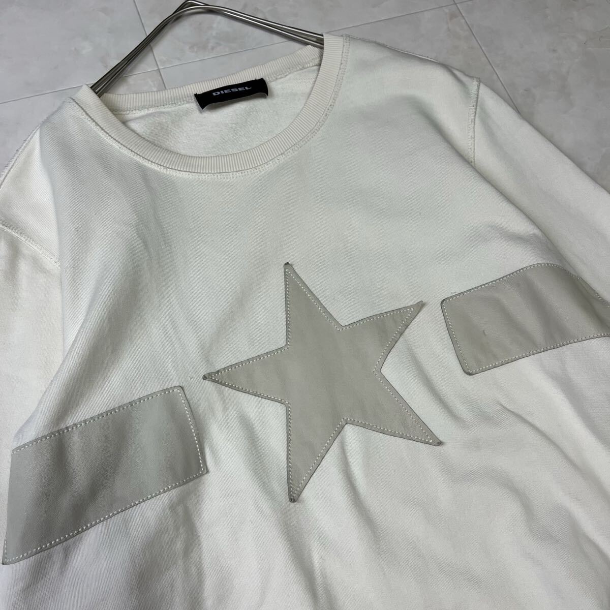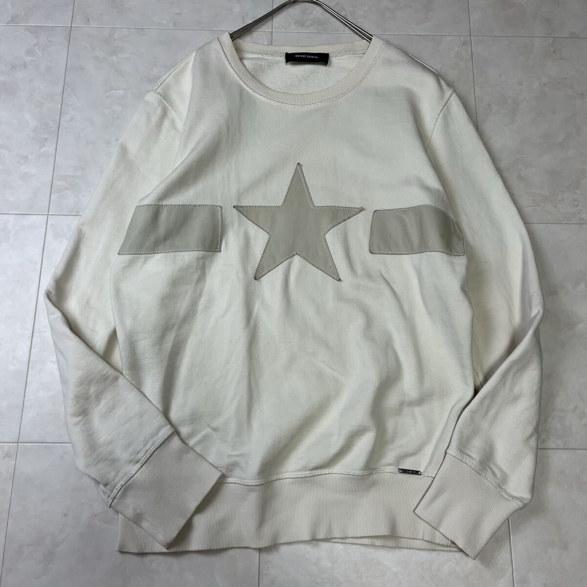 DIESELの人気デザイン、星モチーフのレザーパーツ使いがアクセントになったクルーネックスウェット。ややゆとりあるシルエットで、さまざまなスタイルに合わせやすい一枚です。
