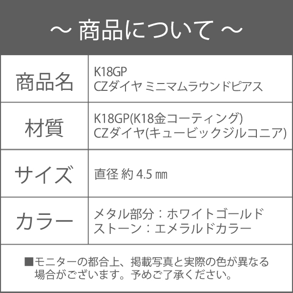 ピアス レディース エメラルド シンプル 小ぶり シルバー 18金 18kコーティング ホワイトゴールド K18GP /【エメラルドカラー】 CZダイヤ
