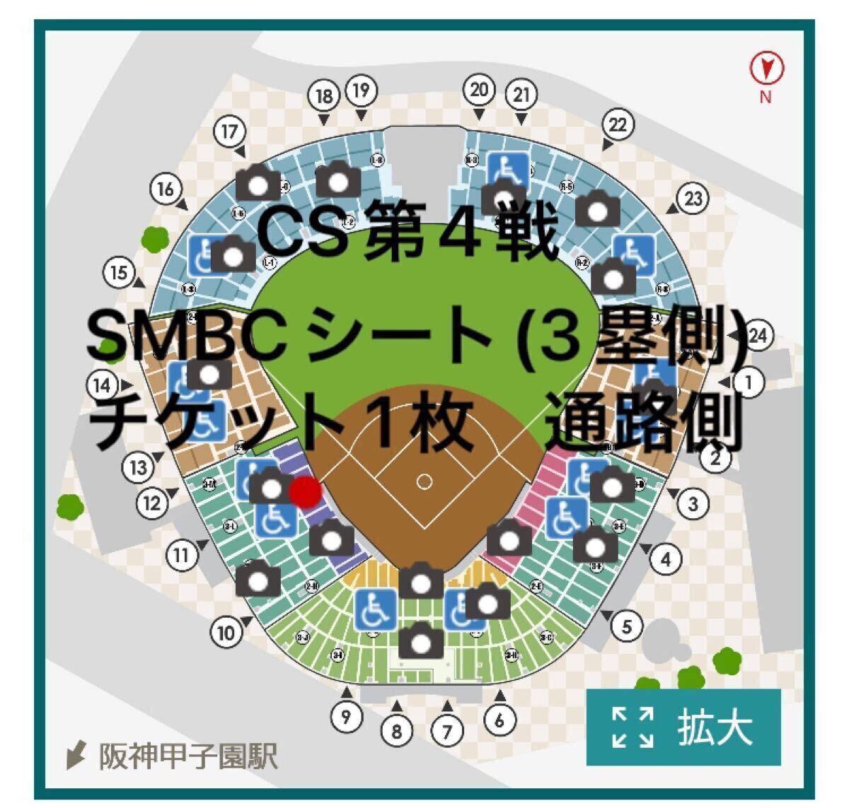 阪神甲子園球場SMBCシート(3塁側)チケット1枚。