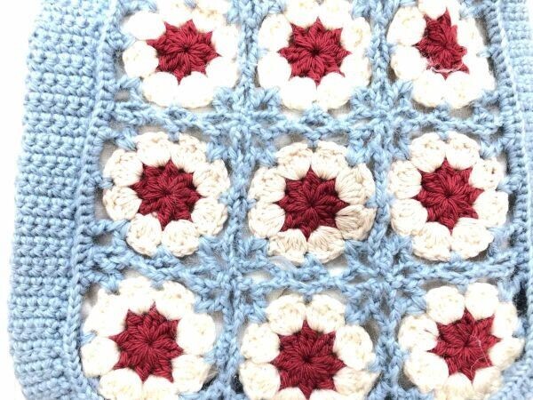 ハンドメイド 手編み レトロ オールド カントリー グラニースクエア ジャガード ニット トートバッグ カバン レディース 23×25×7 水色 です。