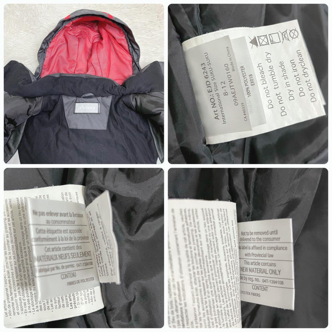 美品 フェニックス Phenix スキーウェア上下 ジュニア 小学生 140-150 ネイビーブラック フード取り外し可能 スノボウェア スキー教室