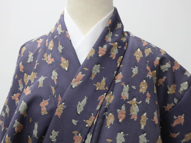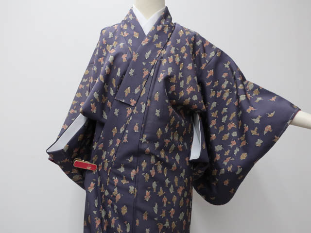 リサイクル商品のため、八掛にシミがございますが着用可能なお品です。 地色はくすみ紫です。 1枚目の画像が近いお色かと思われます。 素材は化繊です。 |