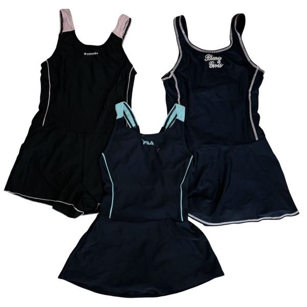 45【整理品リサイクル3枚セット】女子競泳水着M&Lサイズ★FILAコンバースなど★スカートタイプ★光沢濃紺ネイビー黒ブラックピンクブルー