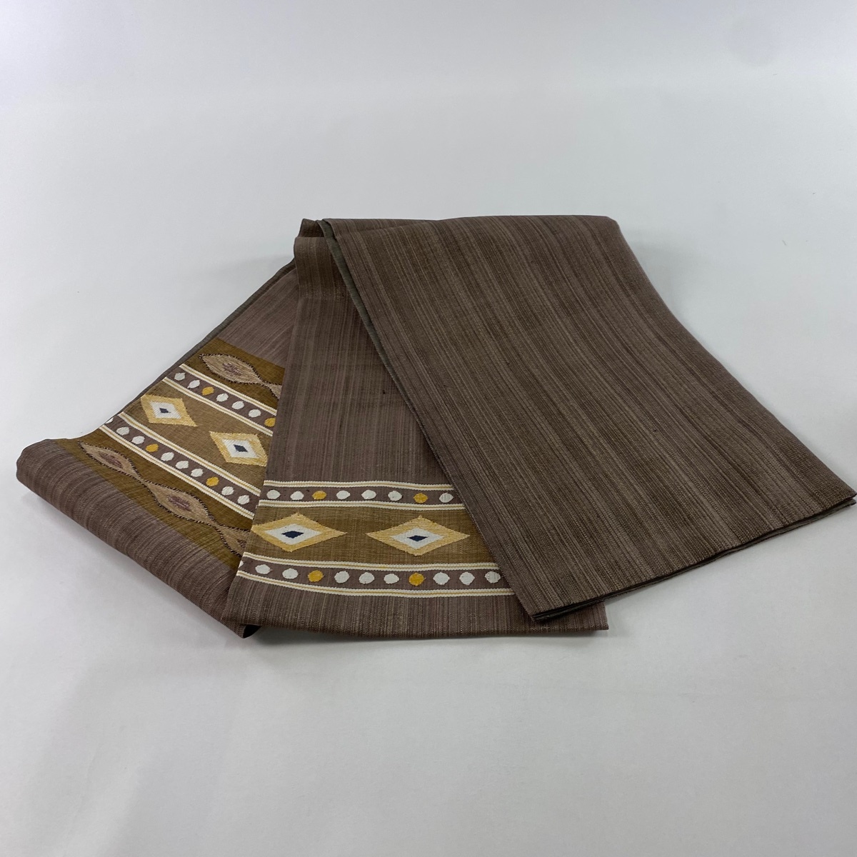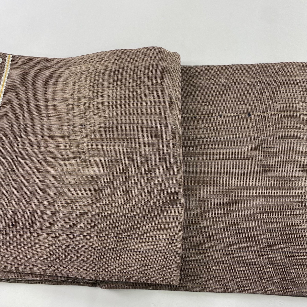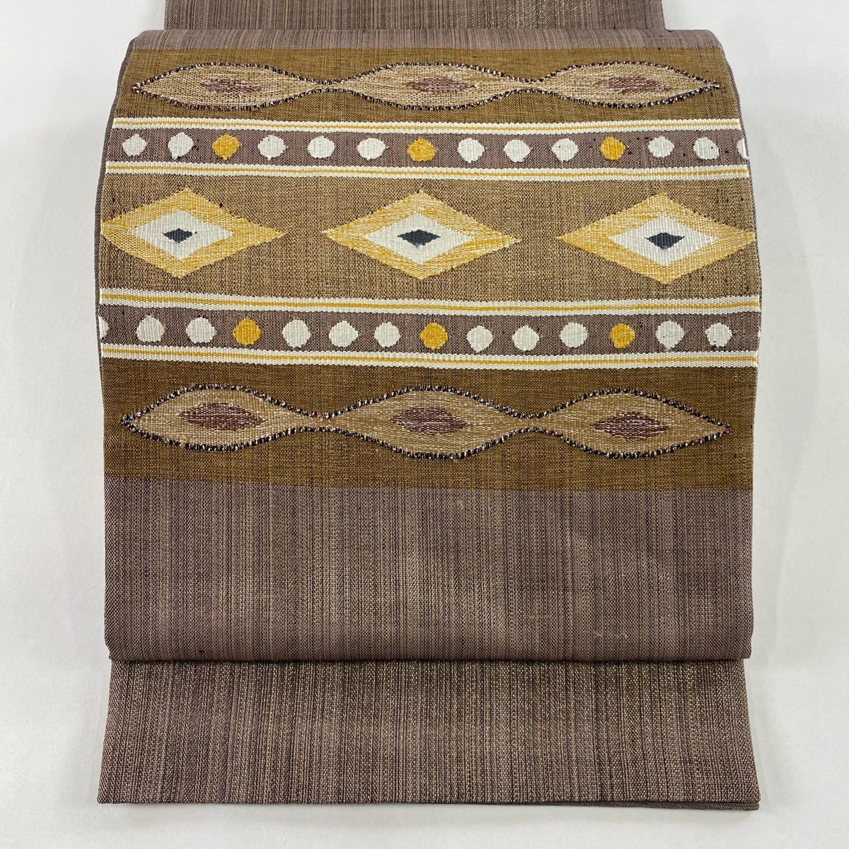 | 袋帯 秀品 縞 菱 金糸 灰茶 お太鼓柄 正絹 【中古】 |