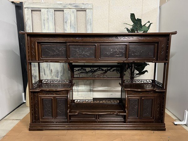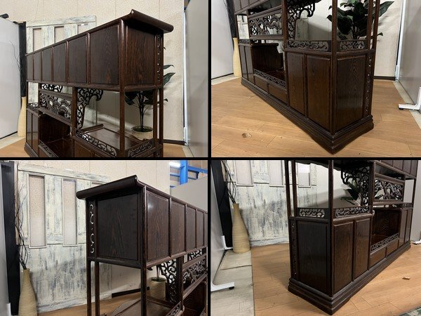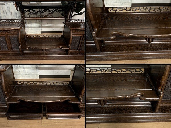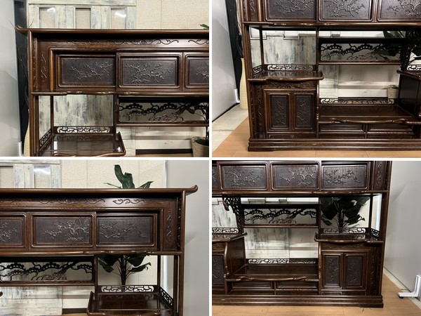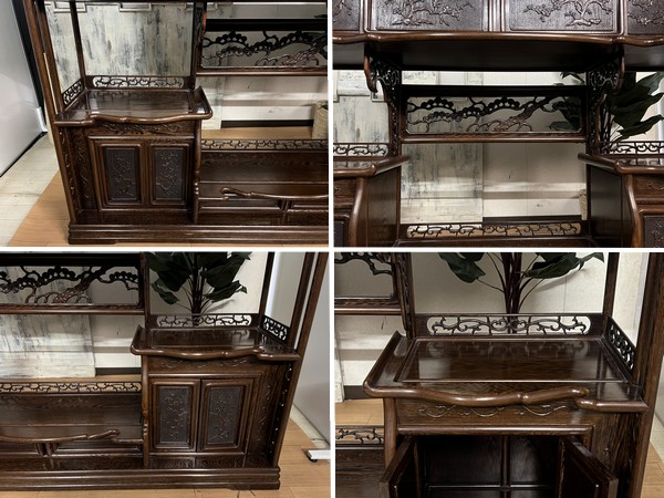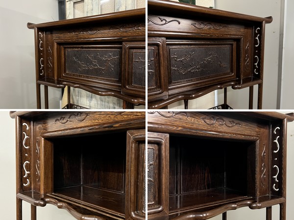 §綺麗【 茶箪笥 / 東洋古美術 唐木家具 透かし彫り 違い棚 美術品 工芸品 時代箪笥 和製アンティーク希少 重厚 骨董 茶道具 茶道 】N12085