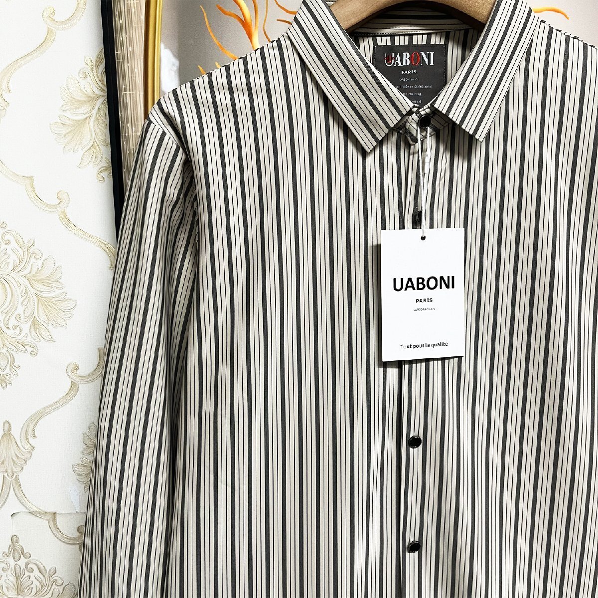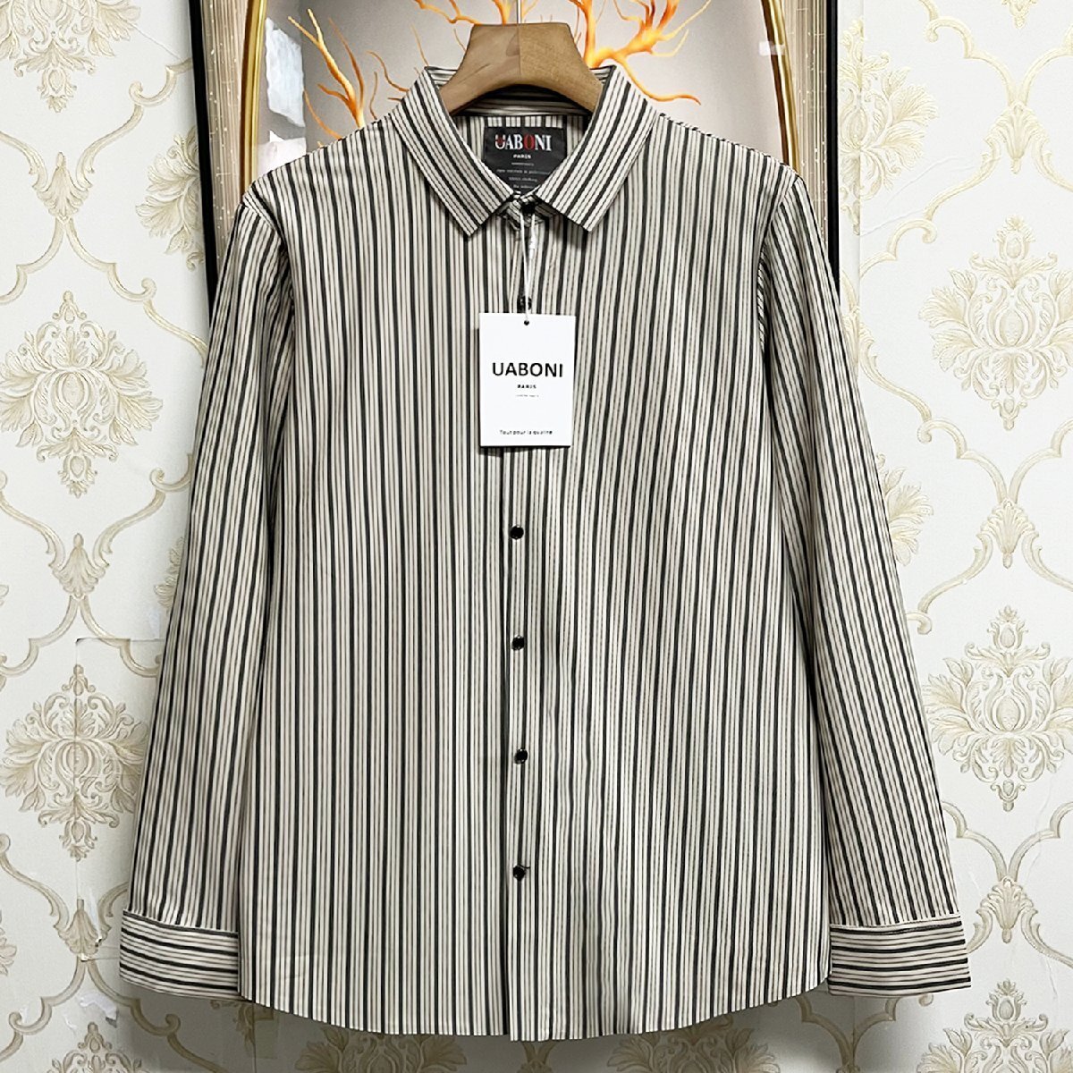 人気EU製&定価4万◆UABONI*Paris*長袖シャツ*ユアボニ*パリ発◆シルク混 柔らか 通気 ストライプ柄 洗練 フォーマル 開襟シャツ カジュアル 紳士 L/48サイズ