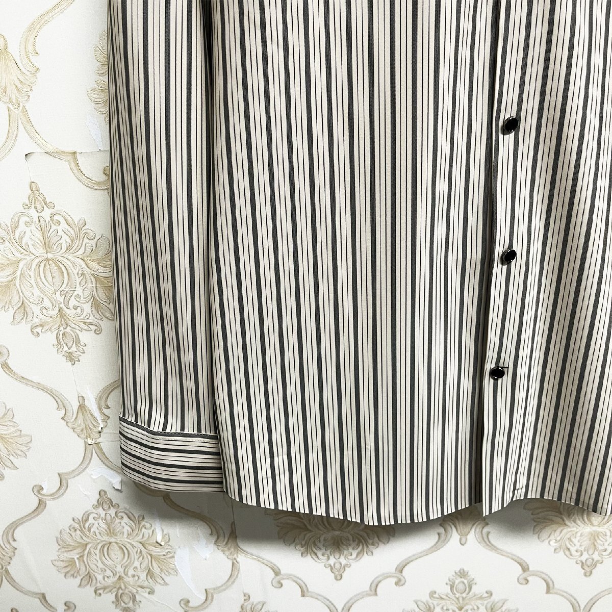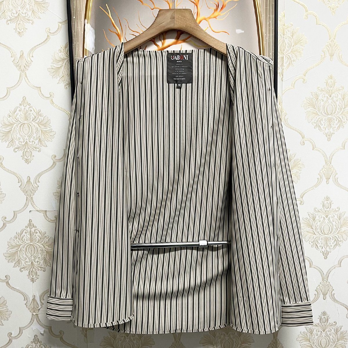 人気EU製&定価4万◆UABONI*Paris*長袖シャツ*ユアボニ*パリ発◆シルク混 柔らか ストライプ柄 フォーマル 開襟シャツ カジュアル L/48