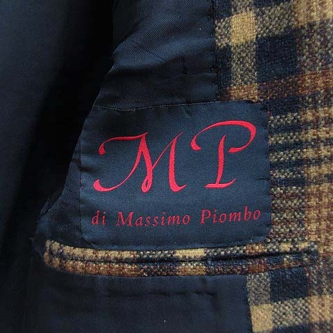 エムピーディマッシモピオンボ Mp Massimo Piombo ウール シルク チェック テーラード ジャケット 2B ブラウン 茶 42 イタリア製 メンズ