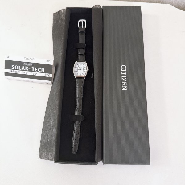 箱サイズ:約6.5×25×2.6(cm)/重さ:140g●化粧箱入●現品約3.3×2.3×(厚さ)0.8cm・腕廻りサイズ約13.5〜17cm・本体重量=約18g●ケース=ステンレス(スワロフスキー(R)・クリスタル入)、ガラス=クリスタルガラス・バンド=カーフ●日常生活用強化防水(5気圧)●平均月差±15秒以内●電池交換不要ソーラーテック時計(フル充電時連続6ヶ月持続して動き続けます。)<製造元:シチズン時計株式会社>●電池交換不要のソーラーテック。スワロフスキー(R)・クリスタルを贅沢に使い、手元に気品高いデザイン。