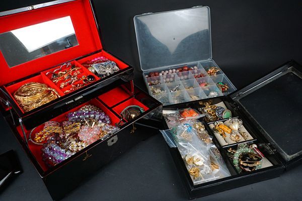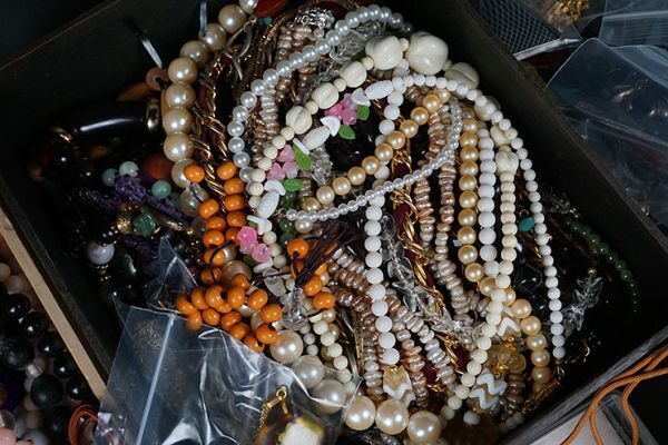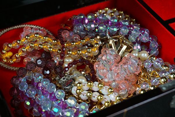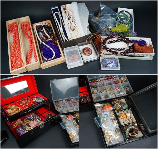 | 商品説明 | 数珠や指輪ネックレスなどのアクセサリーです。 3,670gほどあります。比較的状態の良いアクセサリーです。 宜しくお願いします。 | |
