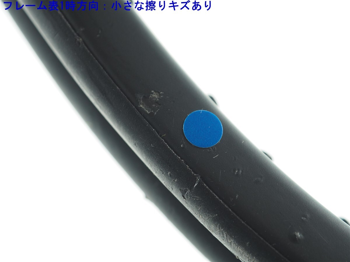 フレーム両面に米粒くらいの大きさのキズや小さな細かいキズなど表面塗装削れの擦りキズが多数見られ、塗装が剥げて下地が出ています。また、バンパーにも擦れなど摩耗がありラケットの使用感があります。ただ、キズは多いですがご使用には問題ありません。
