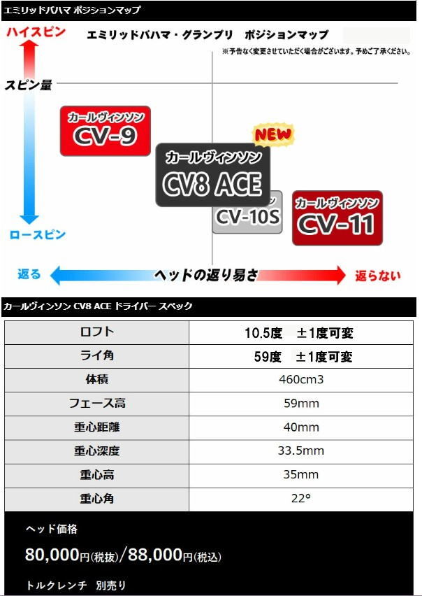 新製品 エミリッドバハマ EMILLID BAHAMA CV8 ACE 新品即決 ヘッド単品 10.5度 可変スリーブ