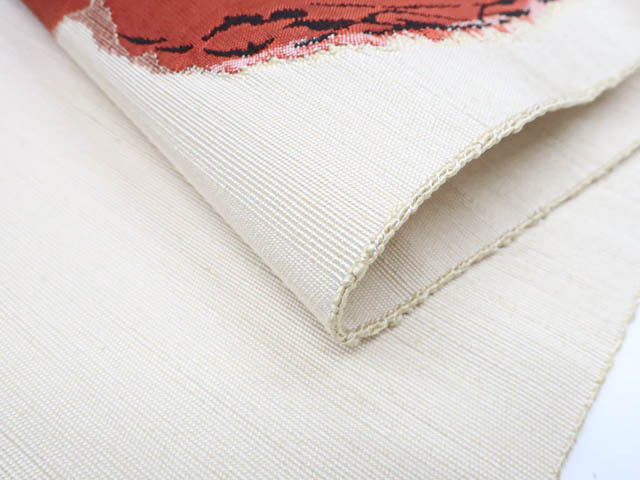 リサイクル商品のため、垂れ先にシミがございますがご着用いただけると存じます。 地色は生成りです。 1枚目の画像が近いお色かと思われます。 素材は正絹です。 日本国内から発送いたしております。 発送後は追跡番号をお知らせいたします。 スタッフによる手作業での検品採寸済み。 |