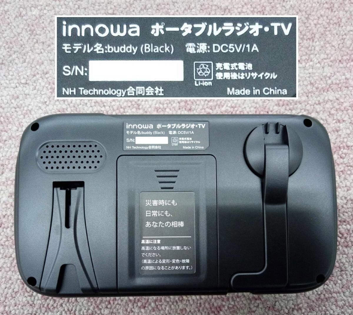 ▼商品名 | [動作OK ほぼ未使用品] innowa イノワ ポータブルラジオ・TV buddy Black AM FM ワンセグ 電池 充電 手回し [二本松店] |