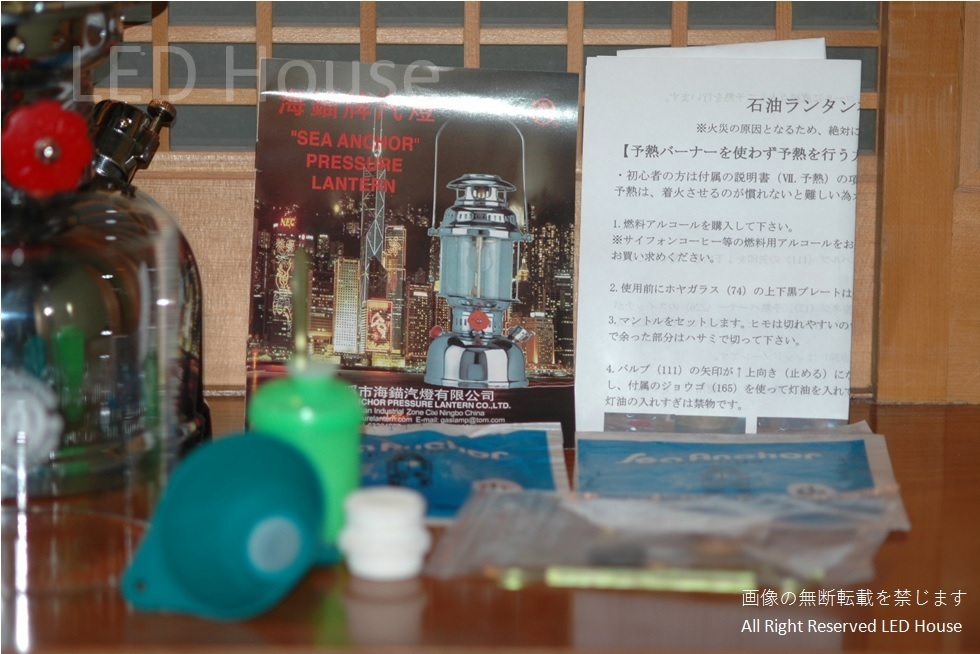 ※ヤマト運輸での発送に電話番号を入れる必要があるので取引メッセージにて電話番号をお知らせください。 眩しくて直視できない500C.P. 頼りになります。 未検品で出品するのではなく、燃料・エア漏れ、タンク内の汚れ、圧力計調整等、当方自ら一つ一つ丁寧に点検しております。 キャンプや宿泊を伴う山歩きの季節にぴったり! 加圧式石油ランプはアジアの屋台・農村などでもよく使われてます。 結構たくさんの部品から構成されていて電気スイッチONですぐに点火 という風にはいきません。 予熱・ポンプ操作など少々コツが必要です。 でも一旦操作を覚えてしまうと、石油だけで明るい光が得られ とても重宝します。東南アジアの屋台などでは未だ現役! 20年位部品を取り替えながらもまだ使っている事もあります。 良い点はガスのように使用後にガスの空き缶が出ません。 ゴミが出ないので処理に困ったり、山や海を汚しません。 寒い時期には熱が出るので暖もとれます。 大きさは高さ41cm、台座部分直径17cm 500C.P.の明るい光 灯油を燃料として1回800cc程の燃料で2-3夜は大丈夫! 発送日より1ヶ月の保障いたしますが、ご使用中の落したり ぶつけたりした際のガラス割れなどはご容赦下さい。 ネジの緩み等がありましたらアドバイスします。 灯油(白石油)以外の燃料は絶対に使わないで下さい。 ホワイトガソリン等、他の燃料の使用は厳禁!! 付属品:予熱用アルコールボトル、ジョウゴ、掃除針、換針2本 噴射針交換道具、マントル2枚、ポンプの予備皮、燃料口のパッキン、 分解用工具、予備ニップル この商品は点火用バーナーが付いてます。プレヒート(予熱) は内部の燃料を噴射させ、アルコールなしでも可能です。 その他パーツも出品しております。 ※傘(メッキランタンリフレクター反射板)は別売りになります。 |