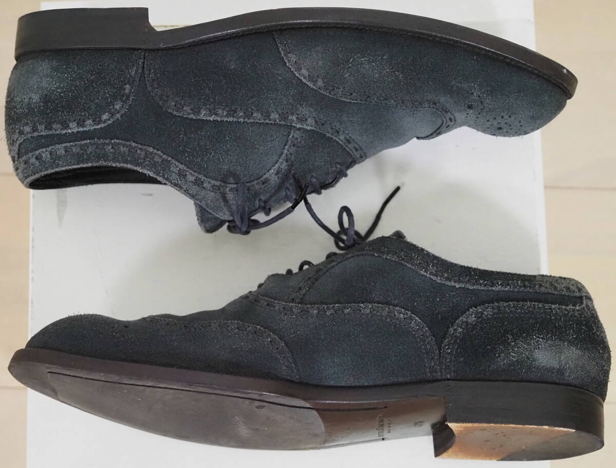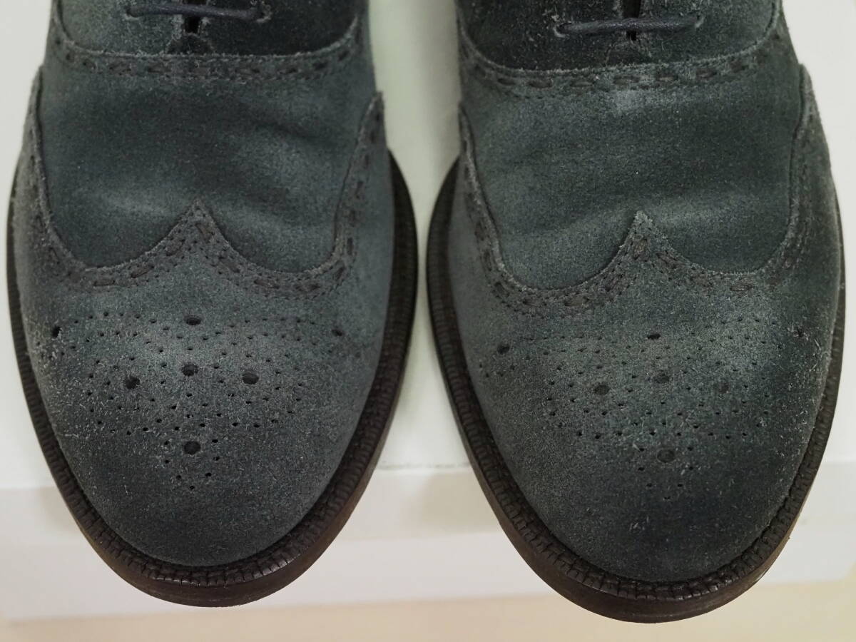 上質なスエード素材を用いたフルブローグシューズです。内羽根5ホールでウィングチップ、ブローグの施されたデザインです。