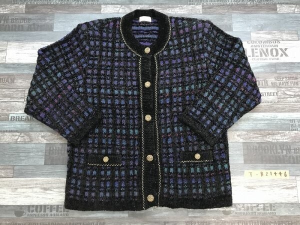 LIERMA レディース チェック柄織り ニットジャケット L 黒青他 です。