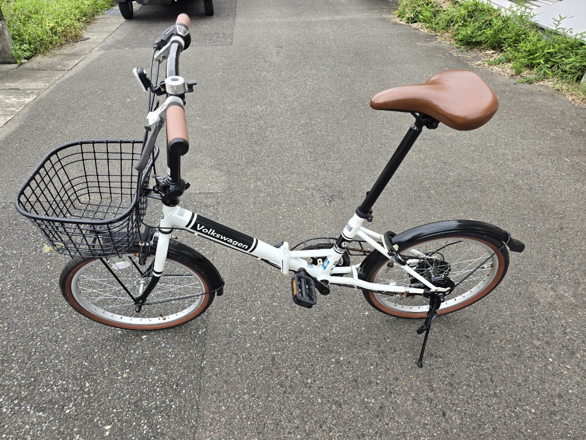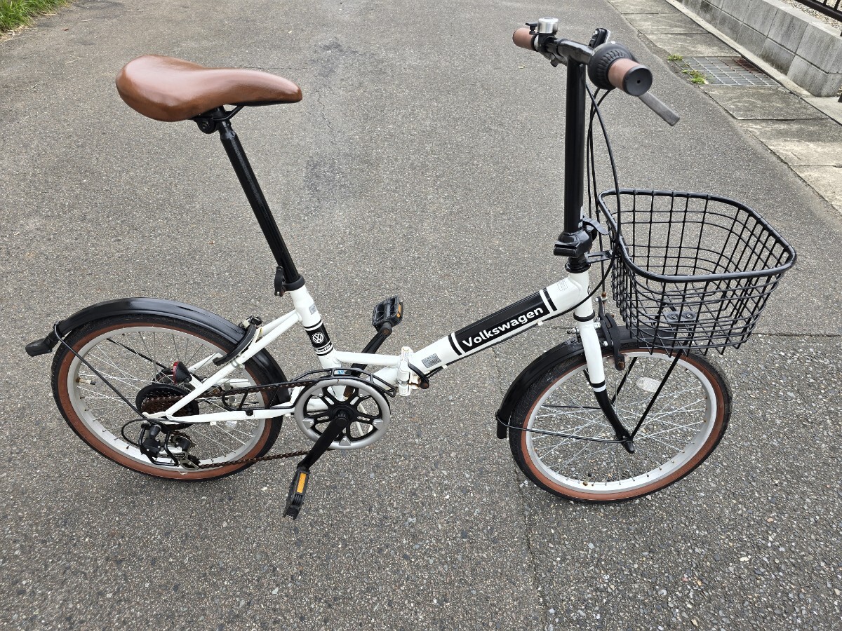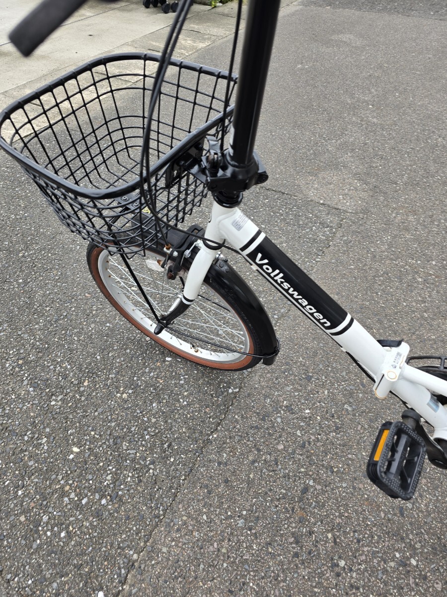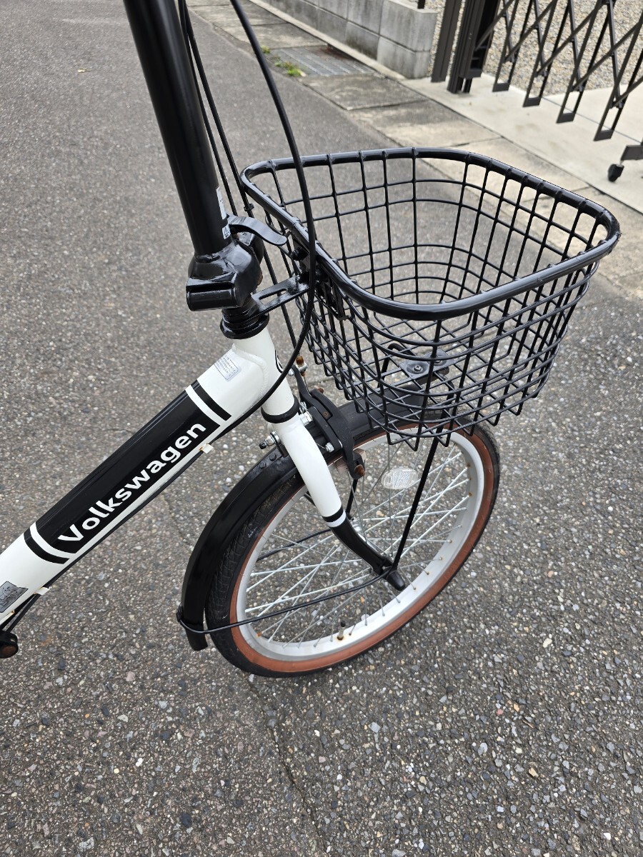 Volkswagen 折りたたみ自転車 20インチ 6ギア カギあり 白/黒 ワーゲン 前カゴ付