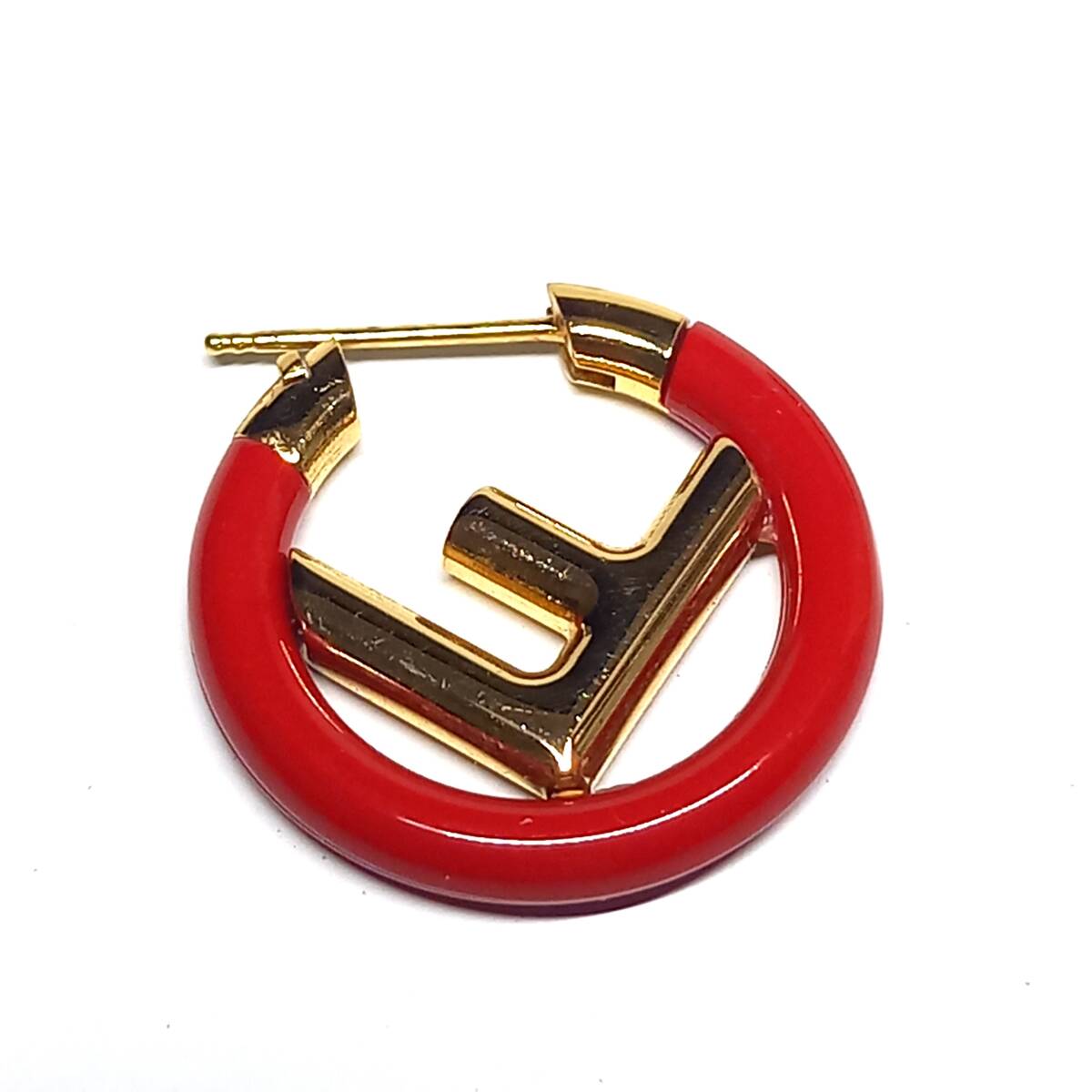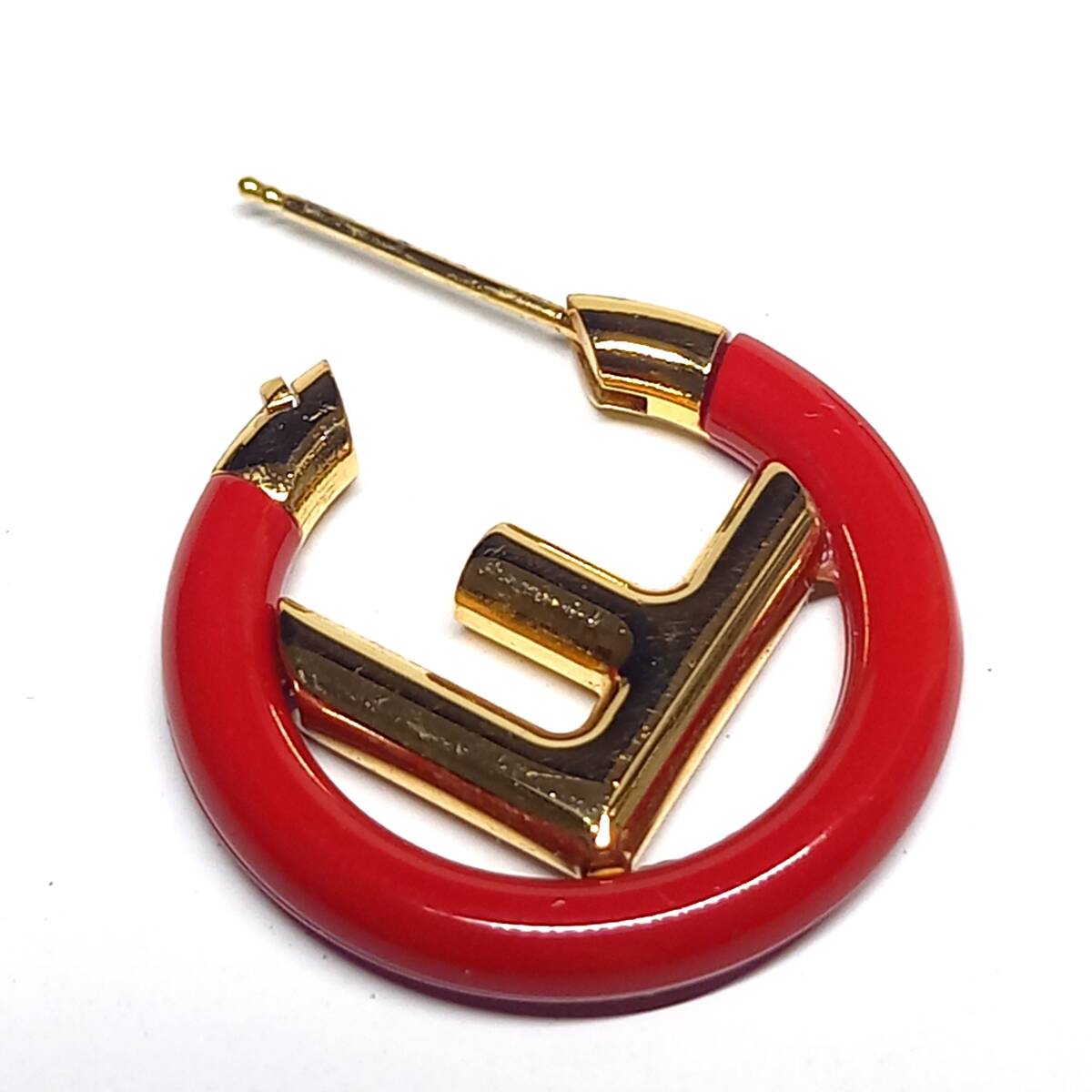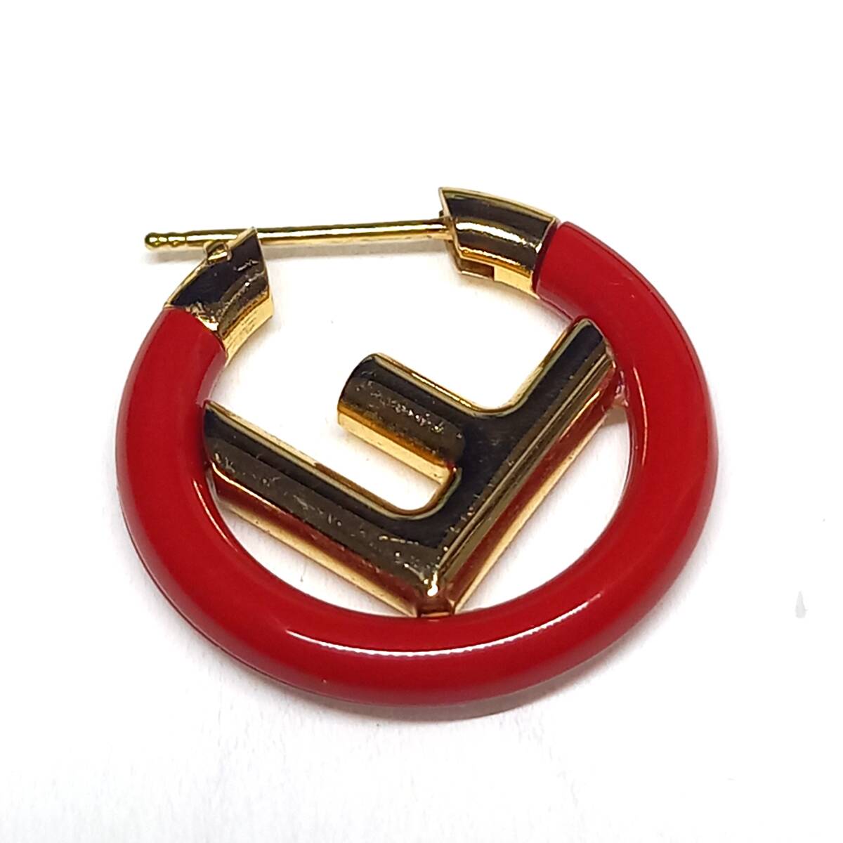 FENDI フェンディ ピアス フープ ロゴ 赤 レッド ゴールド 片耳 片方 エフイズ