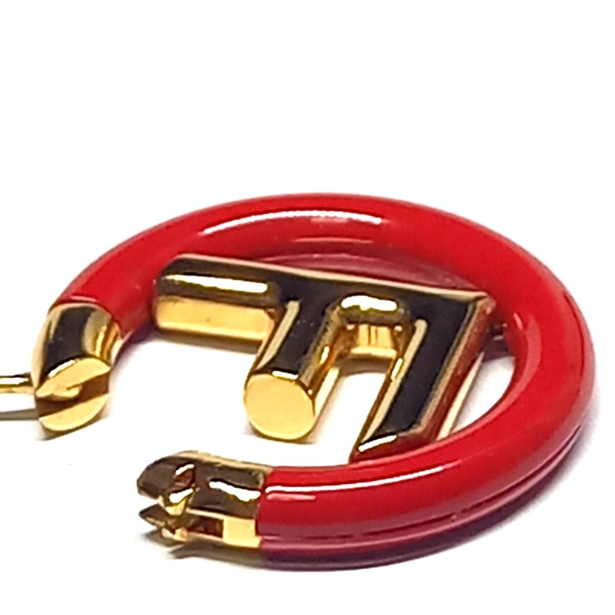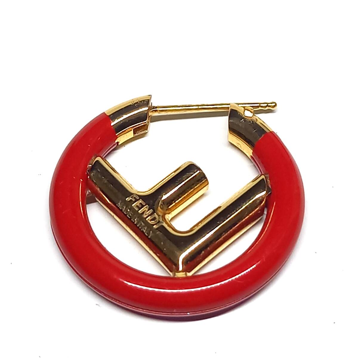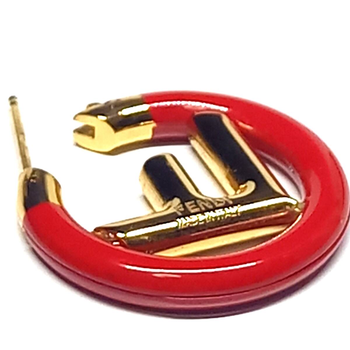 FENDI フェンディ ピアス フープ ロゴ 赤 レッド ゴールド 片耳 片方 エフイズ