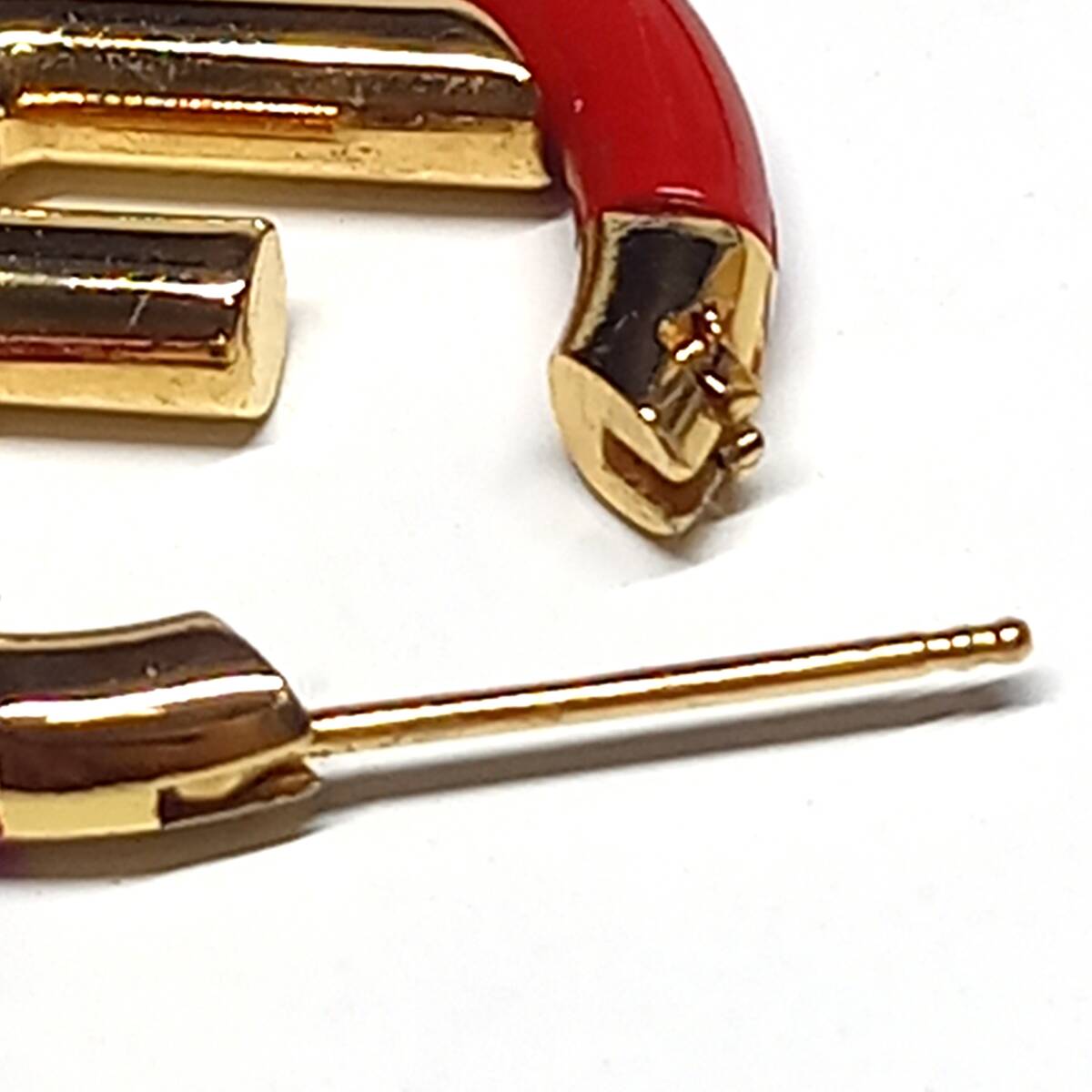 FENDI フェンディ ピアス フープ ロゴ 赤 レッド ゴールド 片耳 片方 エフイズ 7107 E466 @10634