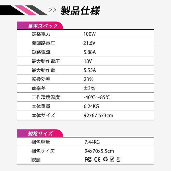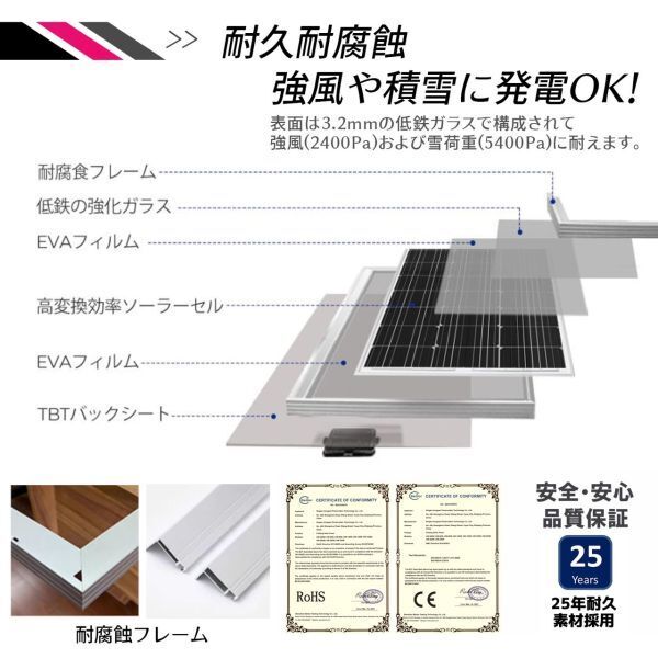 【送料無料・30日間保証付き】ソーラーパネル 100W 単結晶 1枚入 高変換効率 太陽光パネル 太陽光チャージ