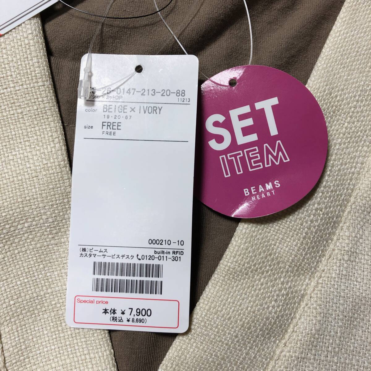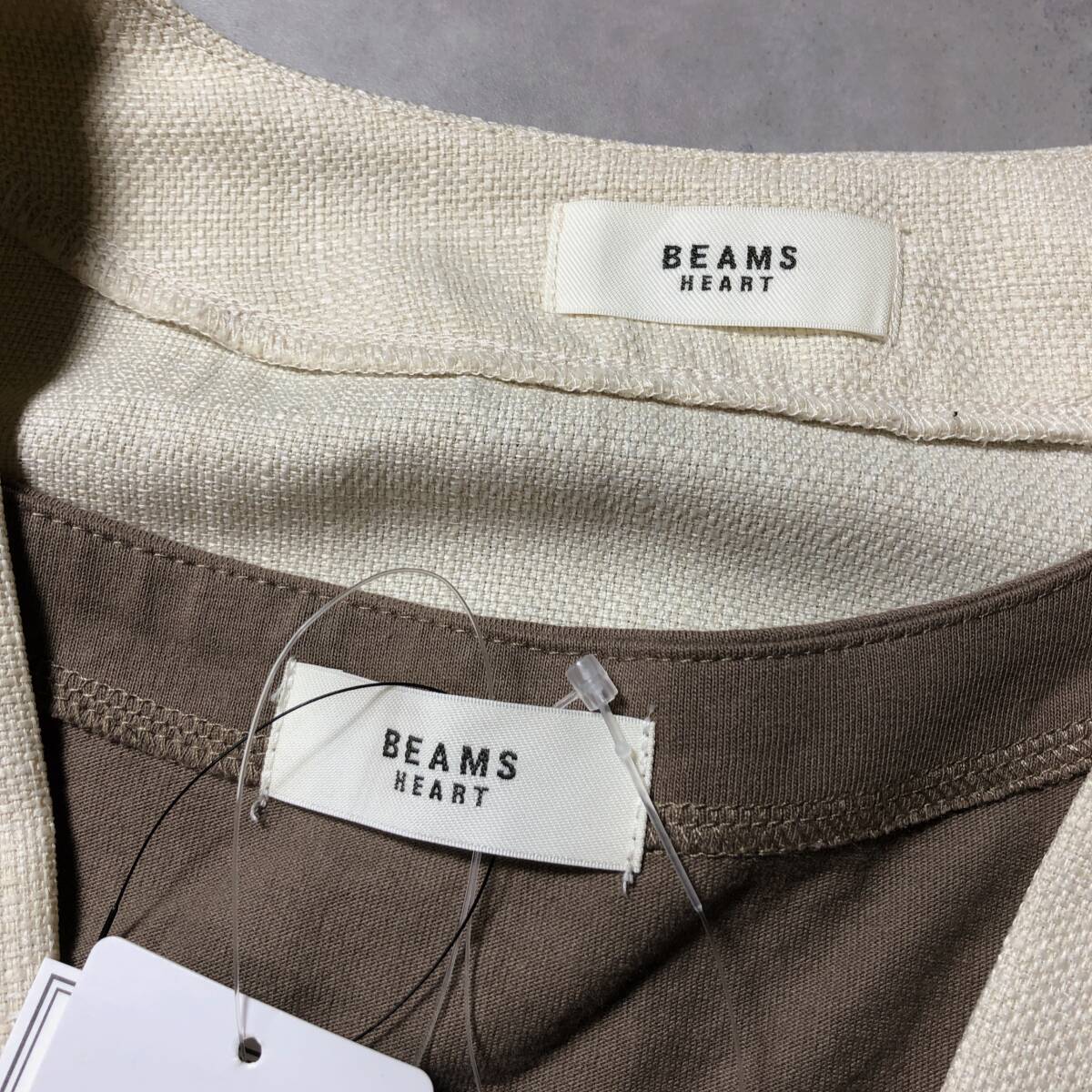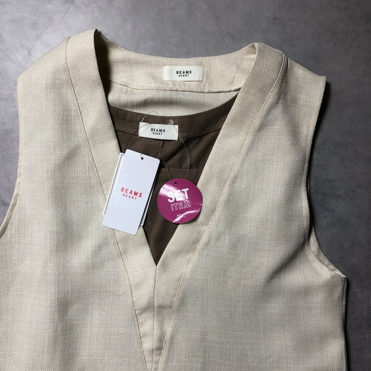 商品名 :WQ788● BEAMS HEART:ベストカットソーワンピース (セットアイテム) ●FREE● BEIGE×IVORY 定価7900- Vネックベスト ノースリーブワンピセットアップ ビームスハート