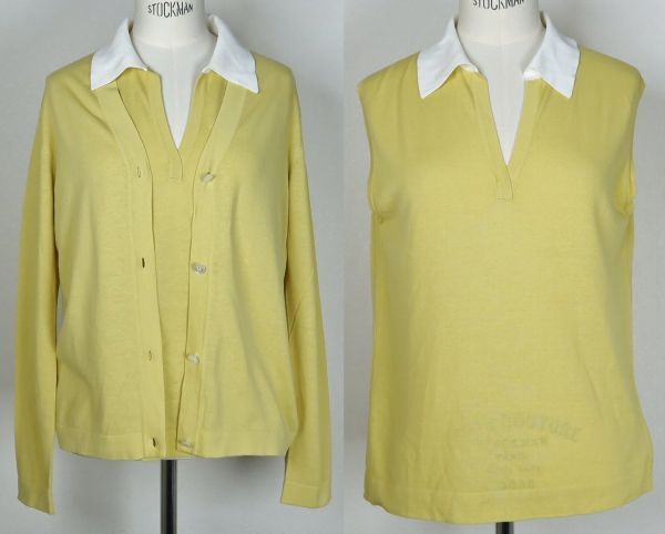 HERMES by martin margiela knit cardigan sleeveless knit size ME エルメス マルジェラ期 ニット カーディガン ノースリーブ ニット アンサンブル <色> 画像を参考にお願いします <素材> 綿100% <サイズ> ME <寸法> 肩幅38(トップス)41(カーディガン)身幅46.5(トップス)46.5(カーディガン)着丈58.5(トップス)60.5(カーディガン)袖丈61(カーディガン)(単位:㎝) <商品状態> ノースリーブニット首回りに薄っすら汚れがございます。若干の着用感はございますが綺麗なお品です。 <備考> マルジェラ期商品、フランス製 ■支払方法 YAHOOかんたん決済で落札価格+送料をお支払いください。 ■発送詳細 佐川急便、送料全国一律900円