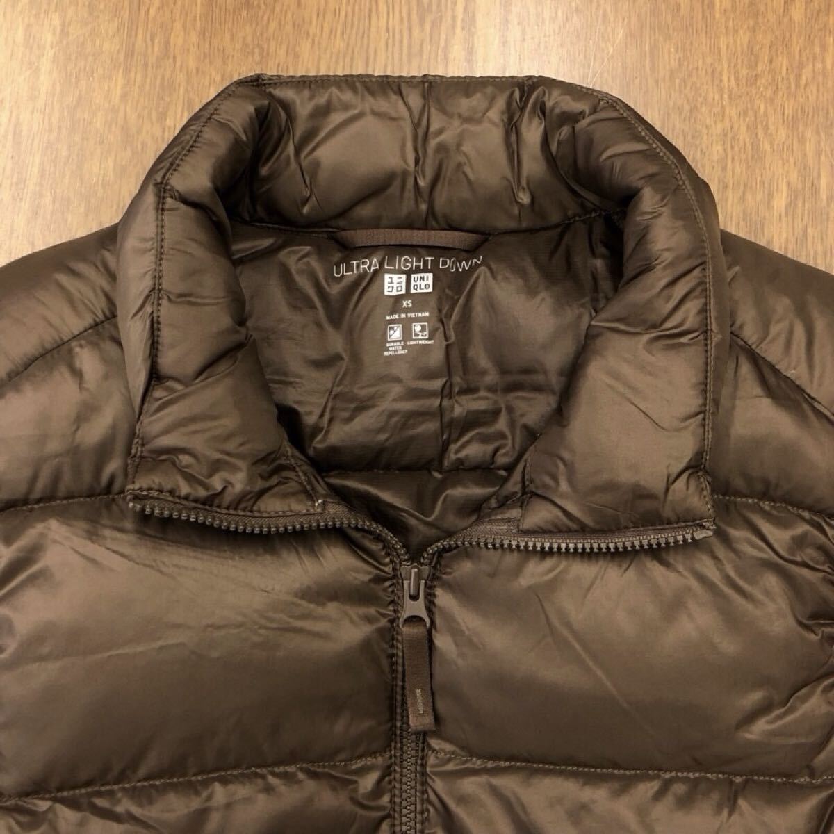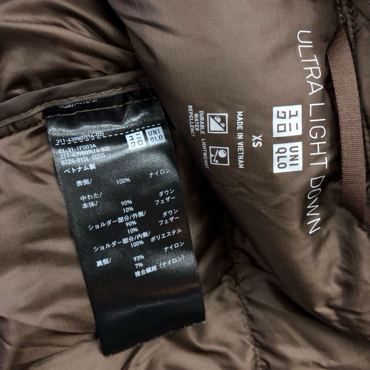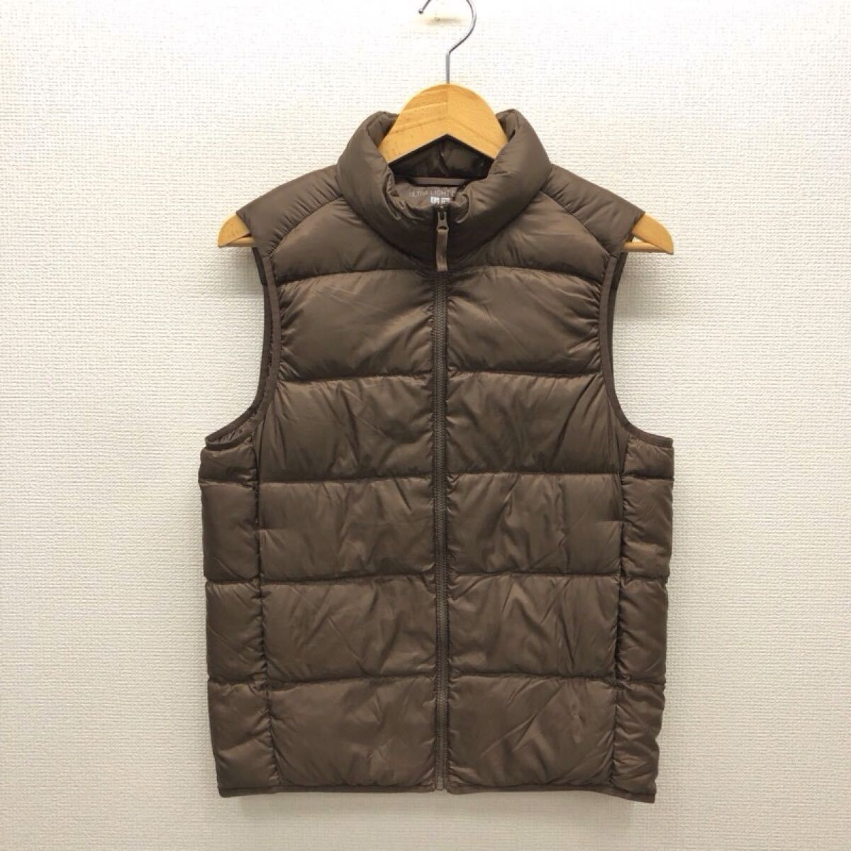 【め050】UNIQLO ウルトラライトダウンベスト XSサイズ ブラウン スタンドカラー 保存袋付き 耐久撥水加工 メンズブランド古着 送料無料