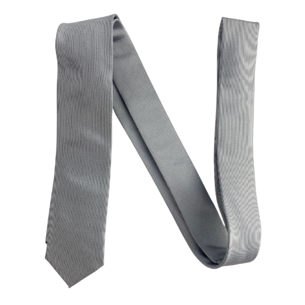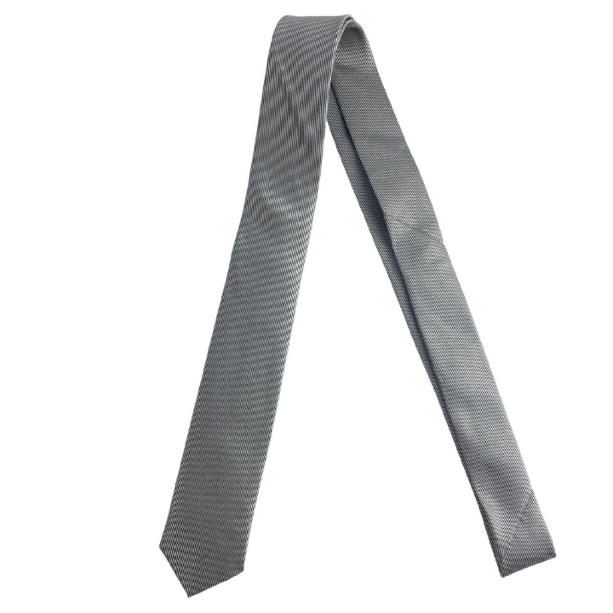 新品 シルク100% メンズ ネクタイ シンプル 無地 シルバーブラック