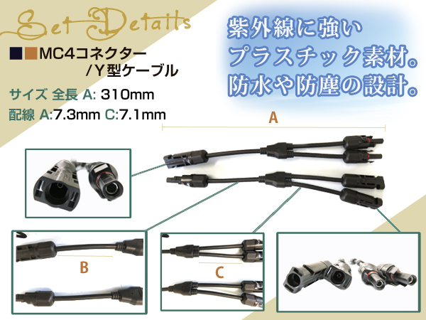 ソーラーパネル 並列接続 MC4 Y型ケーブル オス メス 防水 防塵