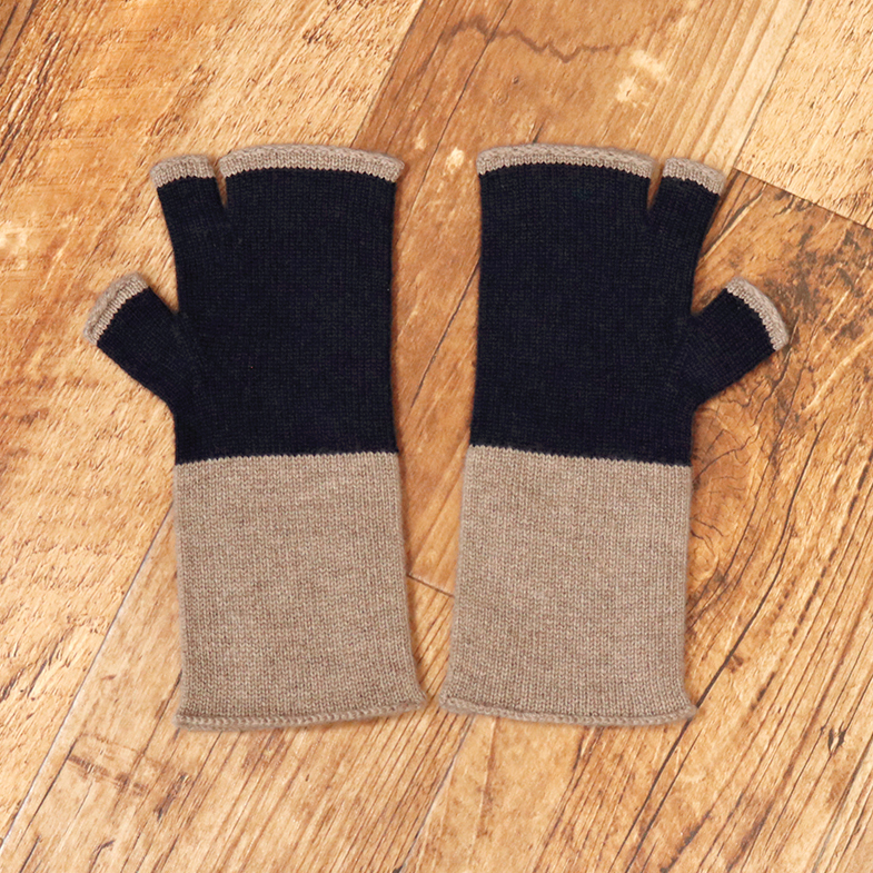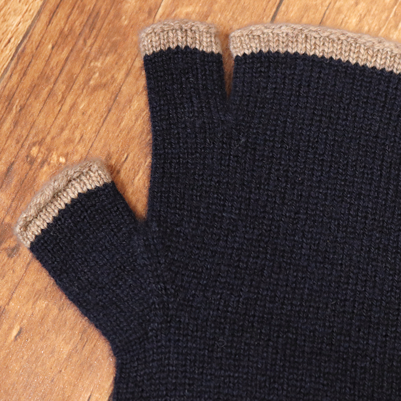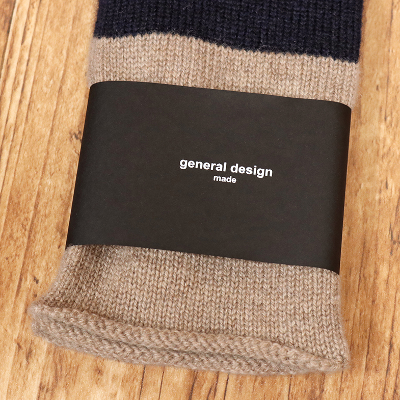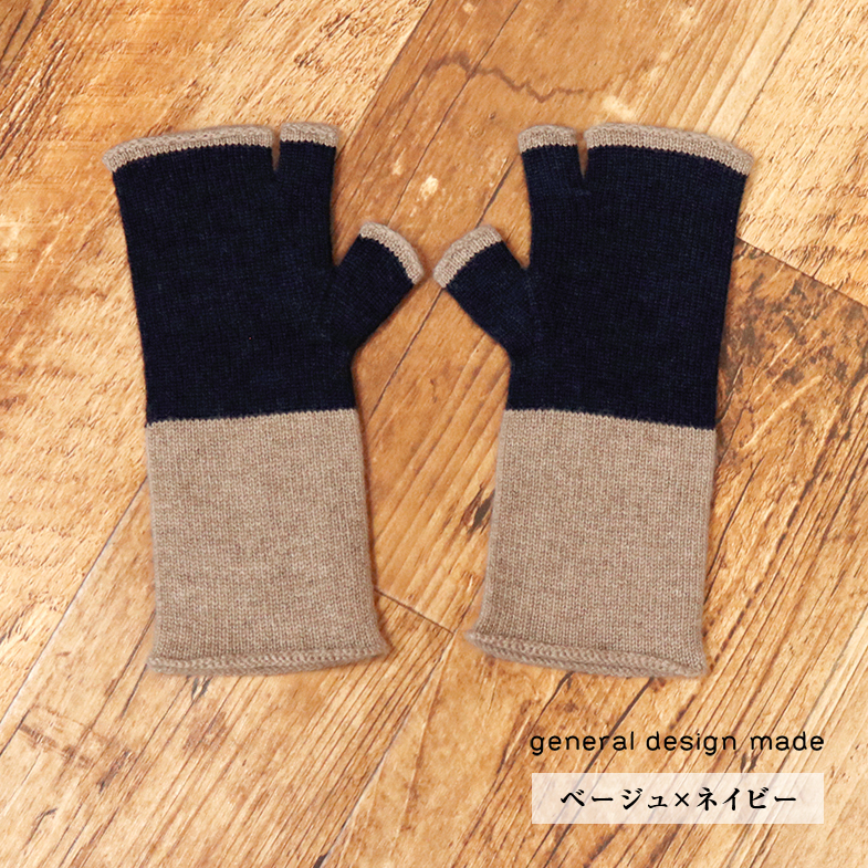 general design made/日本製 カシミヤ ニット ハンドウォーマー 手袋 ジェネラルデザインメイド 新品/ベージュ×ネイビー/jh362/