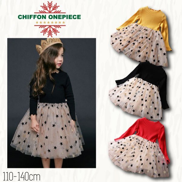 | ☆スターシフォンワンピース ワンピース キッズ用 ※ご購入しましたらオーダーフォームにてご希望のサイズとカラーをお知らせください。 【サイズ,カラー】 ■110cm(イエロー/ブラック/レッド) ■120cm(イエロー/ブラック/レッド) ■130cm(イエロー/ブラック/レッド) ■140cm(イエロー/ブラック) ※レッド140在庫切れです 【商品名】 スターシフォンワンピース ワンピース キッズ用 【素材】 綿、ポリエステル 【カラー】 ■イエロー ■ブラック ■レッド 【サイズ】 ■110cm ■120cm ■130cm ■140cm 【おすすめポイント♪】 ■チュールが可愛いワンピース♪ふわふわのシフォンスカートでガーリーにコーディネート★ ■3カラーの豊富なバリエーションでお気に入りのアウターと併せて可愛くアレンジ! ■切りっぱなし風の袖口、首元で着崩してアレンジしてもおしゃれですね♪ ■別売りのパニエを下に履くとよりボリュームがでます。 | ||||