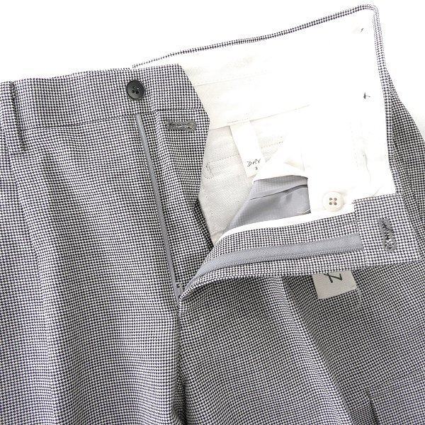 LLサイズ(WAIST 85cm) ※写真は別サイズを使用している場合がございます※ ※商品に記載されたサイズ・寸法です※ ウエスト87cm(内回り1周) 股上26cm 股下92cm 裾幅19.5cm 腿幅33cm(股下10cm部分) 表地:ウール100% 裏地:ポリエステル100% ホワイト×ブラックの千鳥格子 |