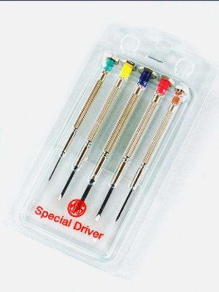 使いやすい5本組精密ドライバーでベルト調整や電池交換の時などの必需品です。 メガネの蝶番のネジの緩みにも使えます。 先端は0.5~2.0㎜までのマイナスドライバーです。 時計・メガネ専門店でも愛用されている信頼できる商品です。