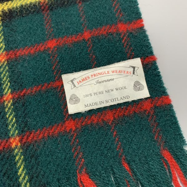 1円〜 JAMES PRINGLE WEAVERS マフラー 緑 チェック ウール C4529
