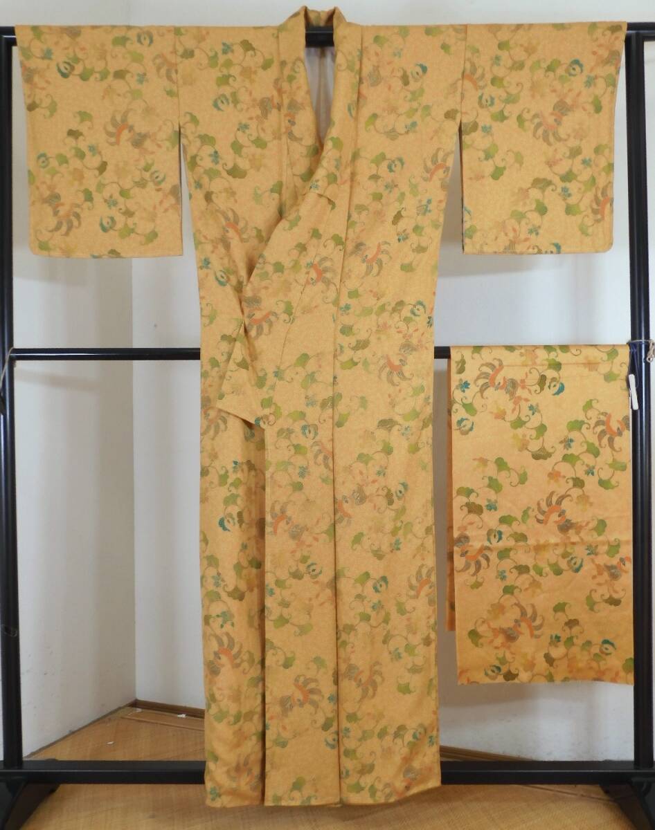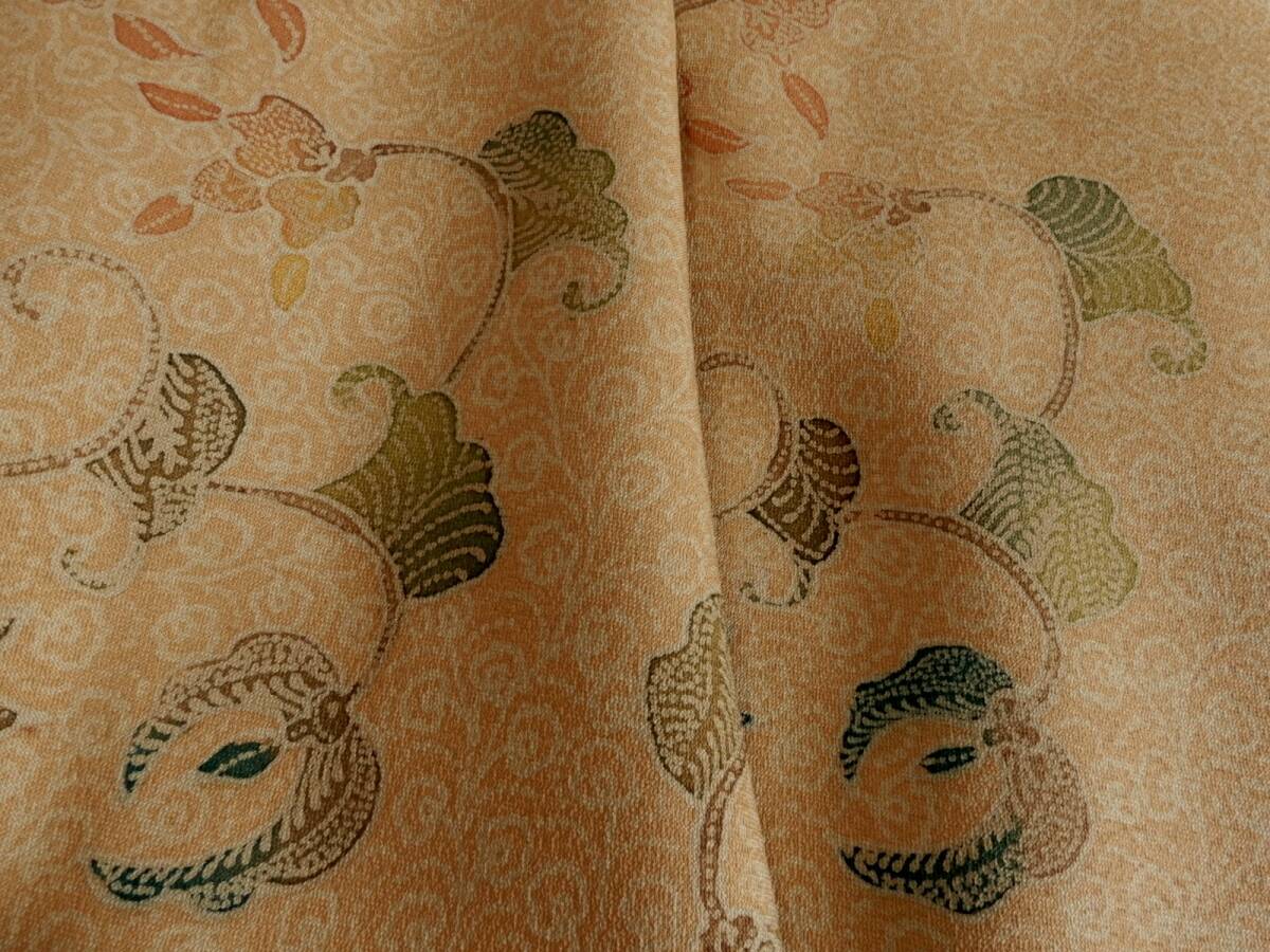 <銀の斧>正絹・ジャワ更紗袷着物・ハギレ付き・しつけ付き