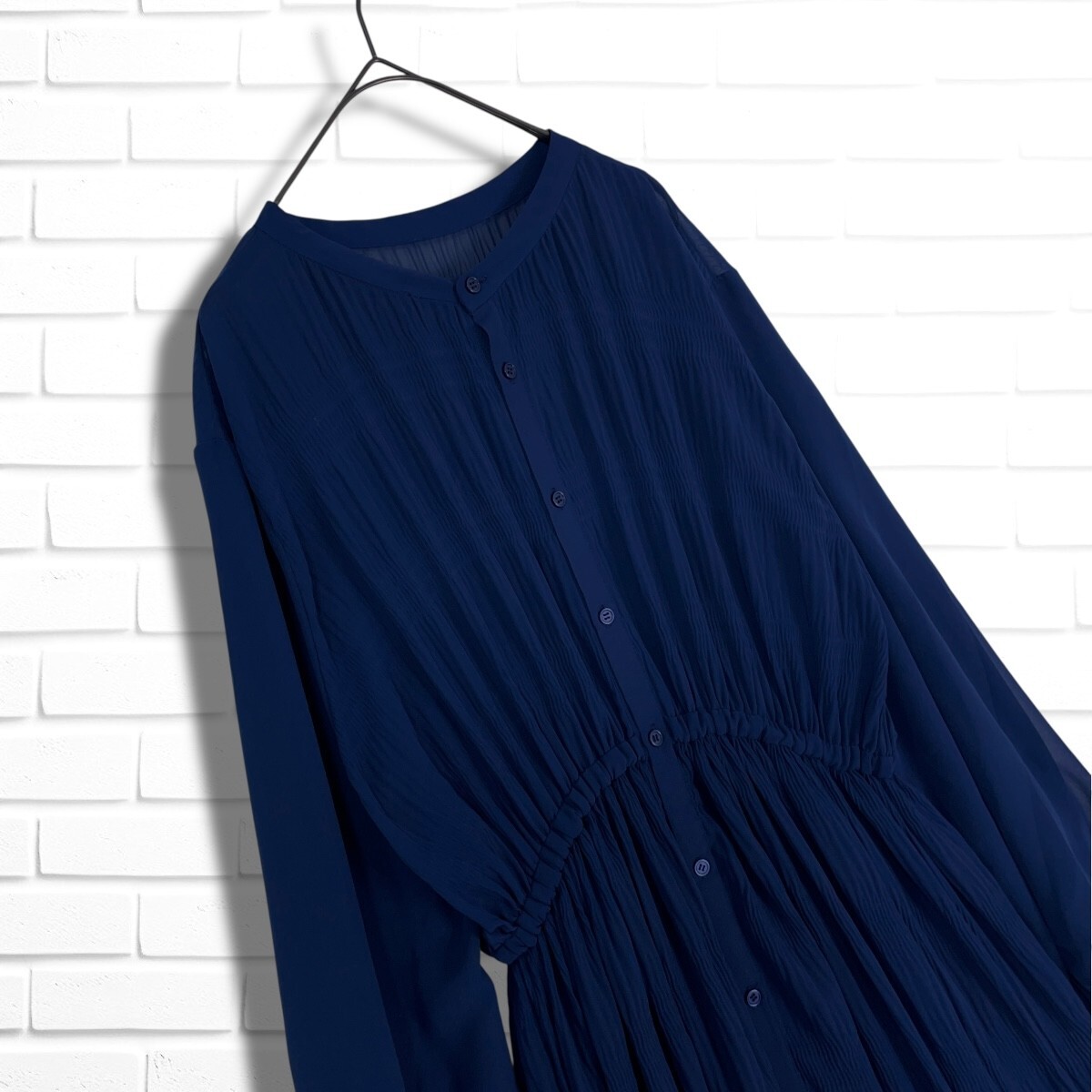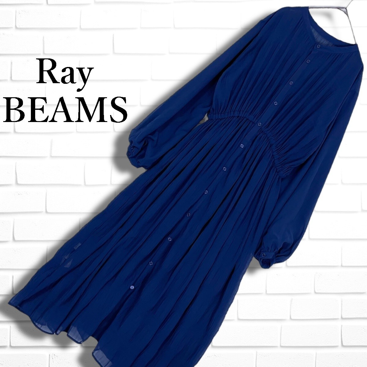 ◆良品◆ Ray BEAMS レイ ビームス ゆったり♪ 長袖 ロング マキシ ワンピース 紺 ネイビー レディース F ◆送料無料◆ 5435I□