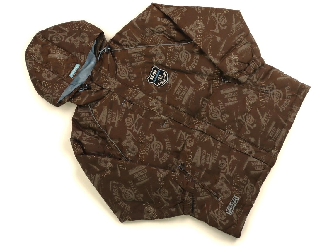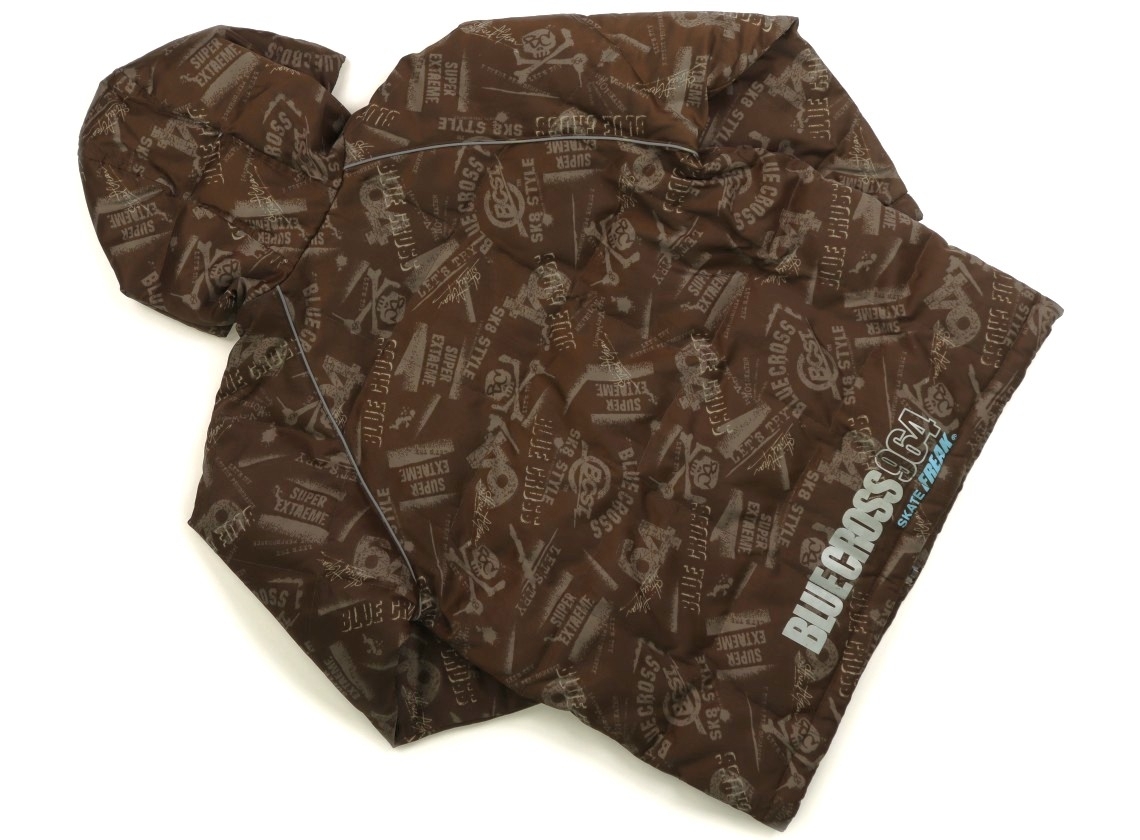 表地、裏地はポリエステル。詰め物はダウンフェザーです。フードは縫い付け。後ろ裾プリントに剥げや汚れがあります。まだお使いいただけそうです。