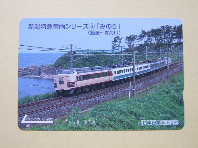 ◇オレンジカード 使用済 多穴券◇JR東日本 新潟支社『新潟特急車両シリーズ③「みのり」(鯨波ー青海川間)』USED品 009902