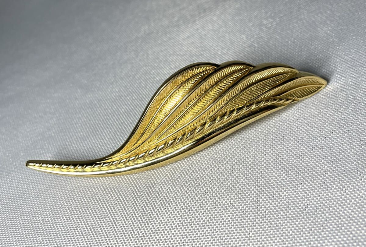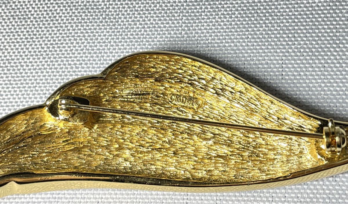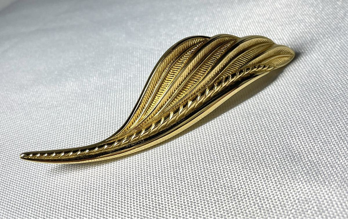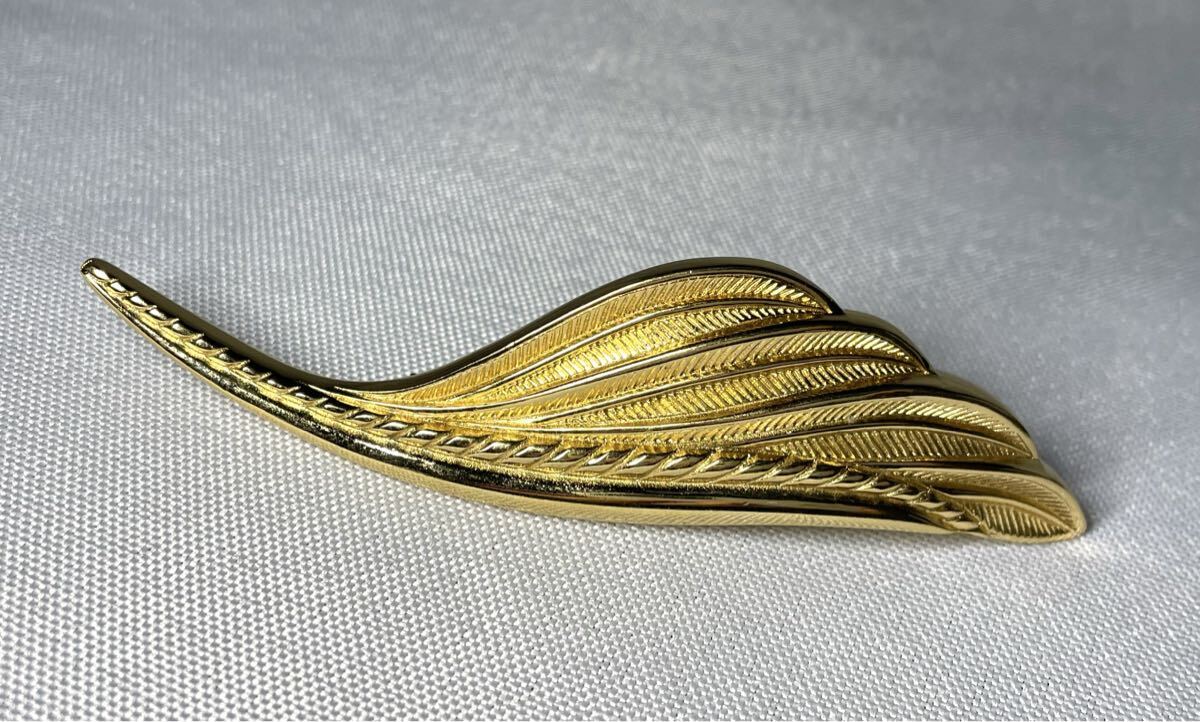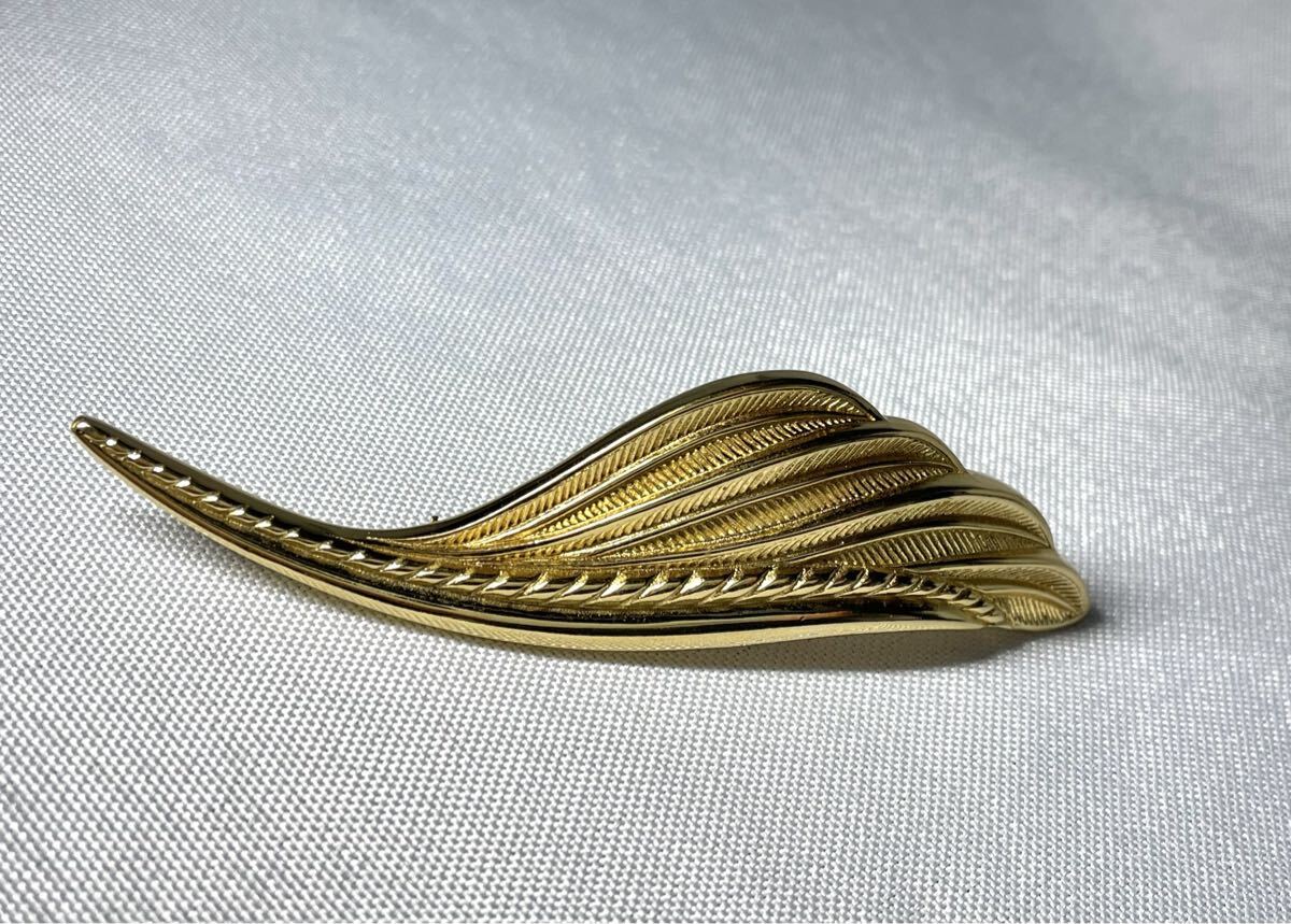 即決美品 Christian Dior クリスチャンディオール フェザーデザイン ラージサイズ ヴィンテージブローチ ゴールド アンティーク 男女兼用