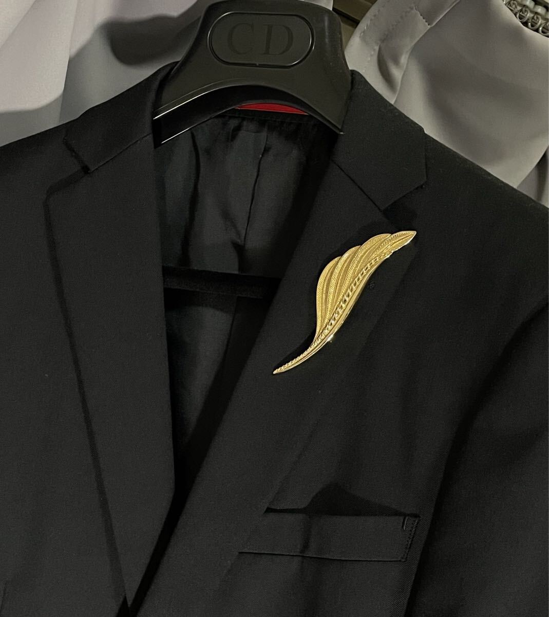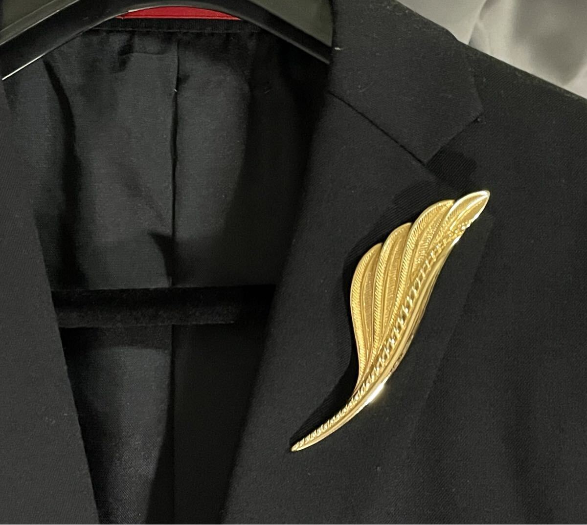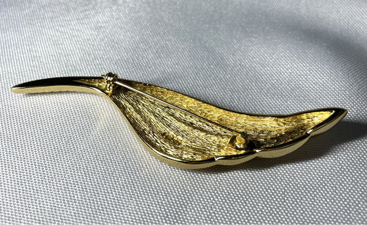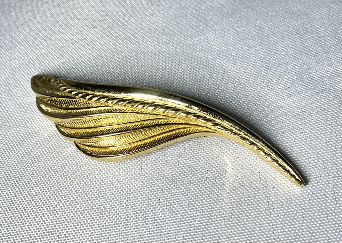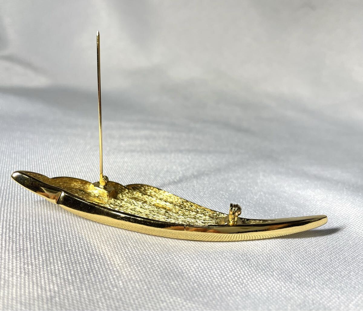 即決美品 Christian Dior クリスチャンディオール フェザーデザイン ラージサイズ ヴィンテージブローチ ゴールド アンティーク 男女兼用