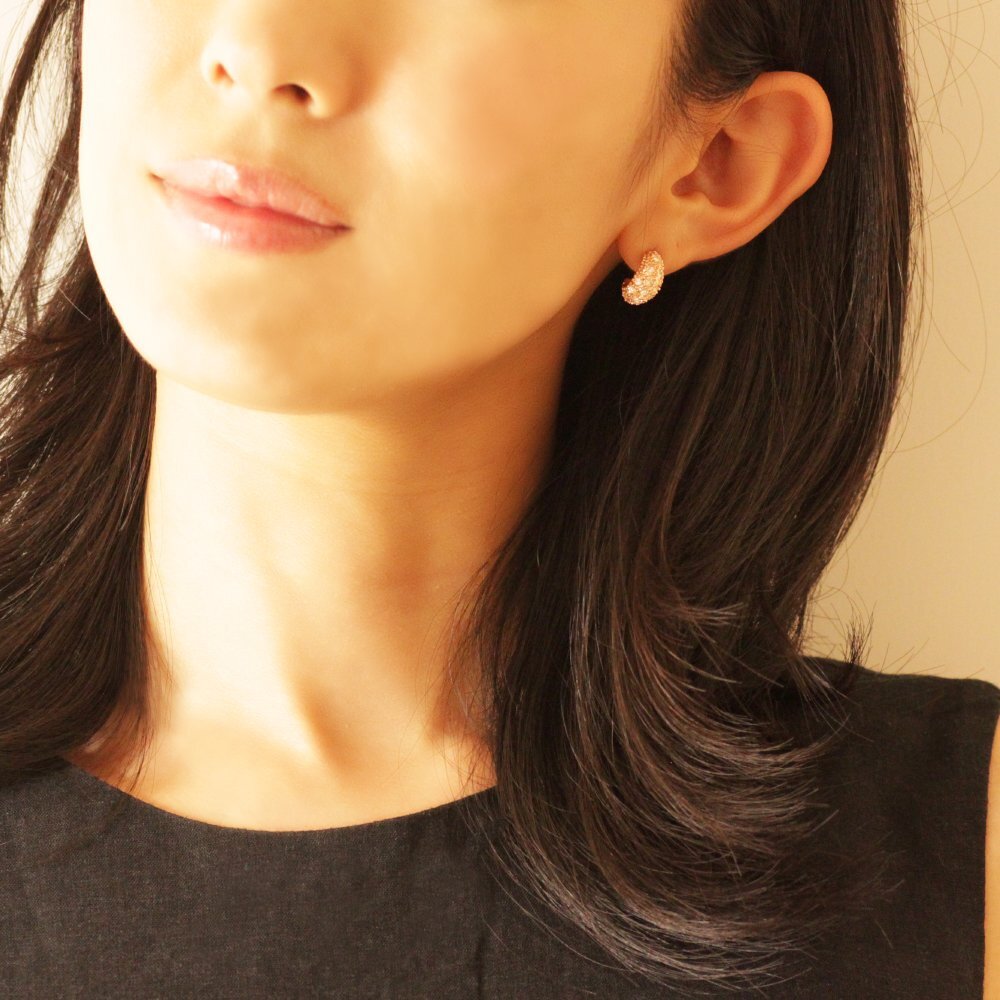 新品/フープ/イヤリング/K18GP/レディース/月形丸甲/パヴェ/18金/18kコーティング/ピンクゴールド/痛くない/樹脂/金属アレルギー/ダイヤ/CZ