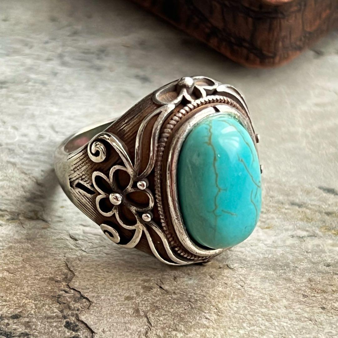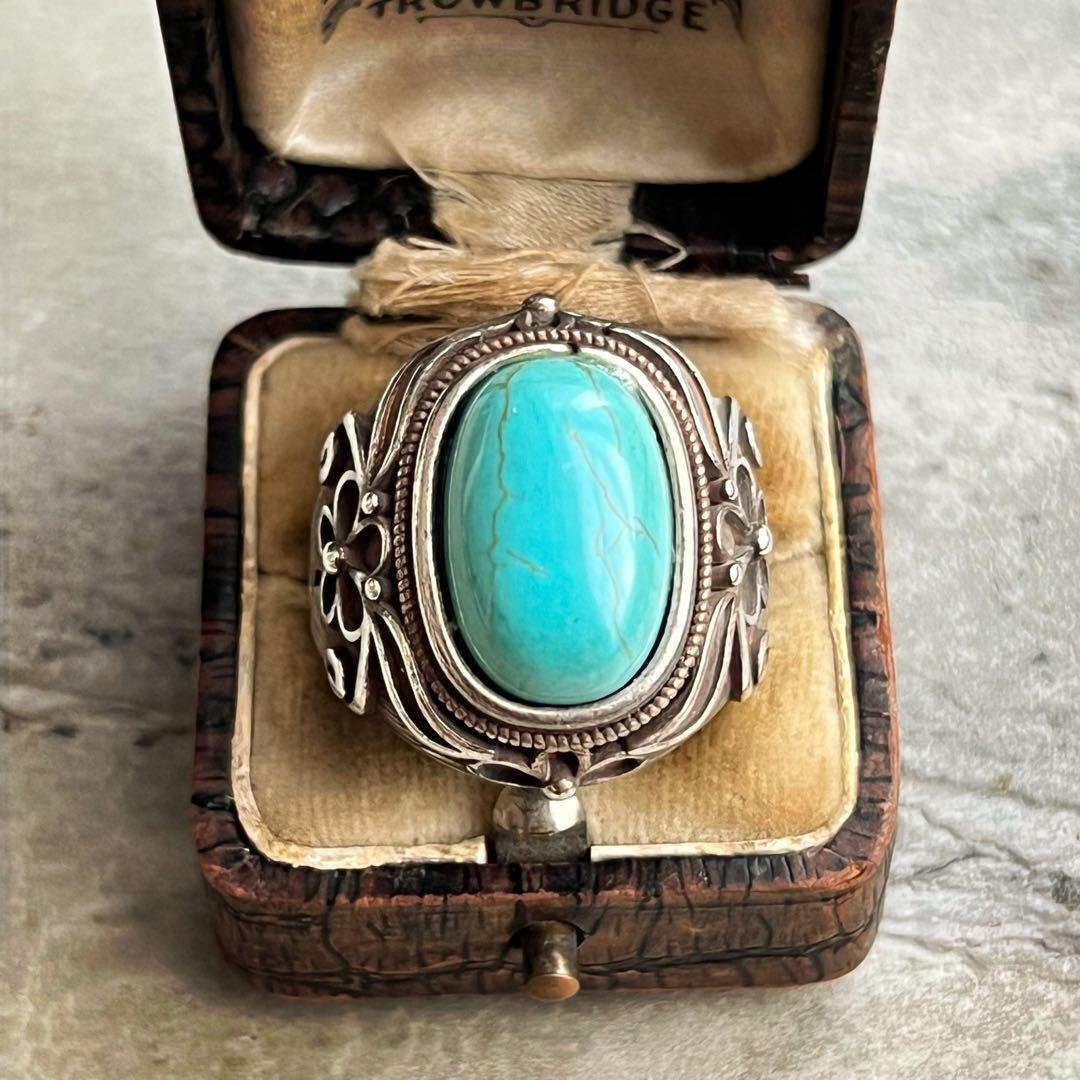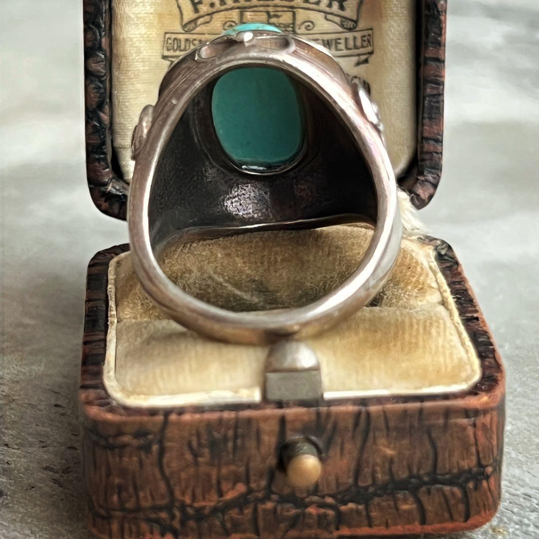 アメリカのヴィンテージショップで買い付けたビッグターコイズデザインリングになります。