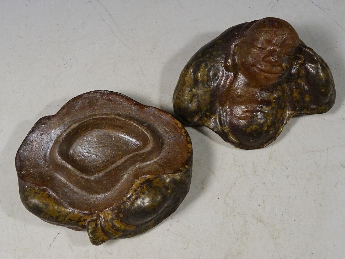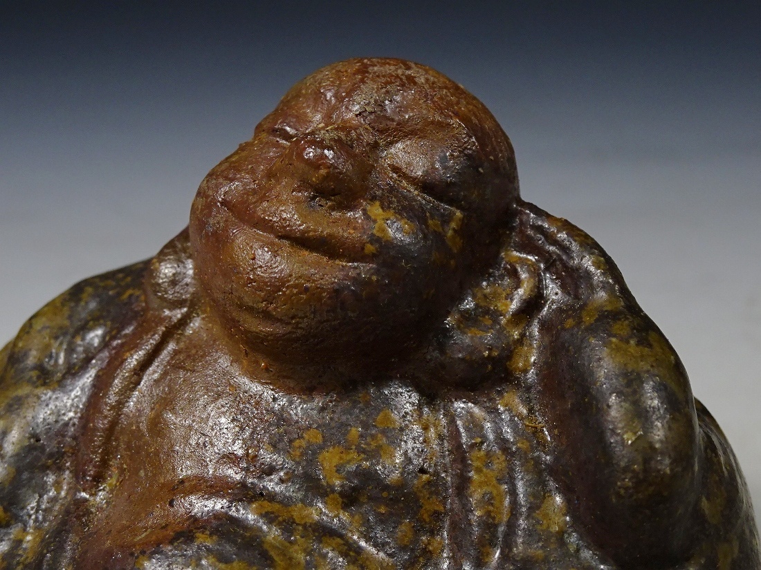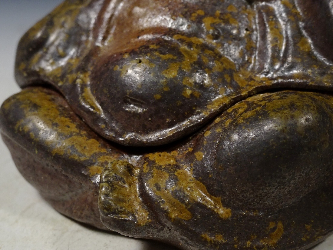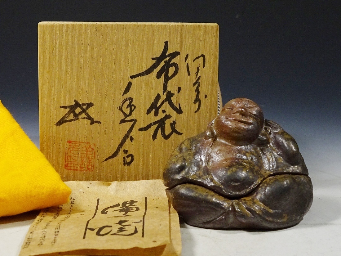 6722■茶道具 備前焼 無形文化財 浦上善次 布袋 香合 共布 共箱 茶道具