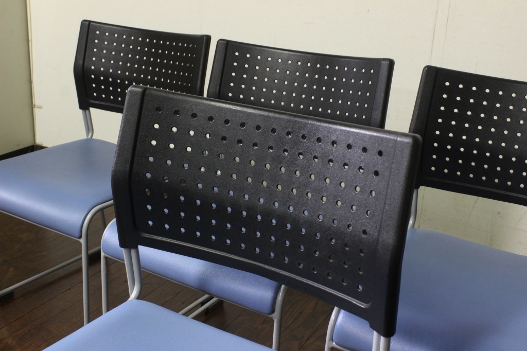 背面は通気穴が空いているため、蒸れにくい構造となっています。 軽量で丈夫なので持ち運びも楽々。 使用しないときは積み重ねて省スペースに保管できます。 会議や休憩スペース、セミナー・研修など、 様々な場面で活躍するミーティングチェアです。 サイズ 幅約43×奥行48×高さ75.5(座面高40) |