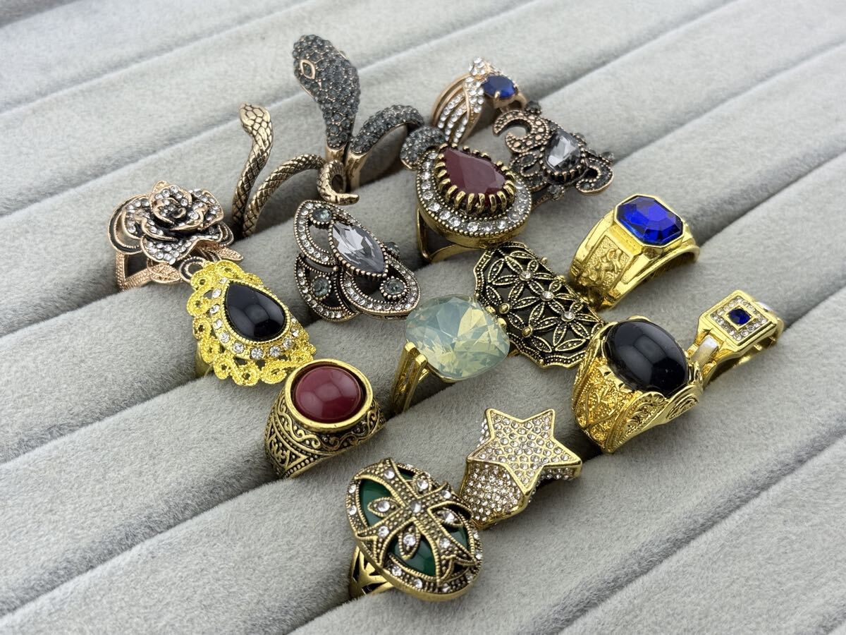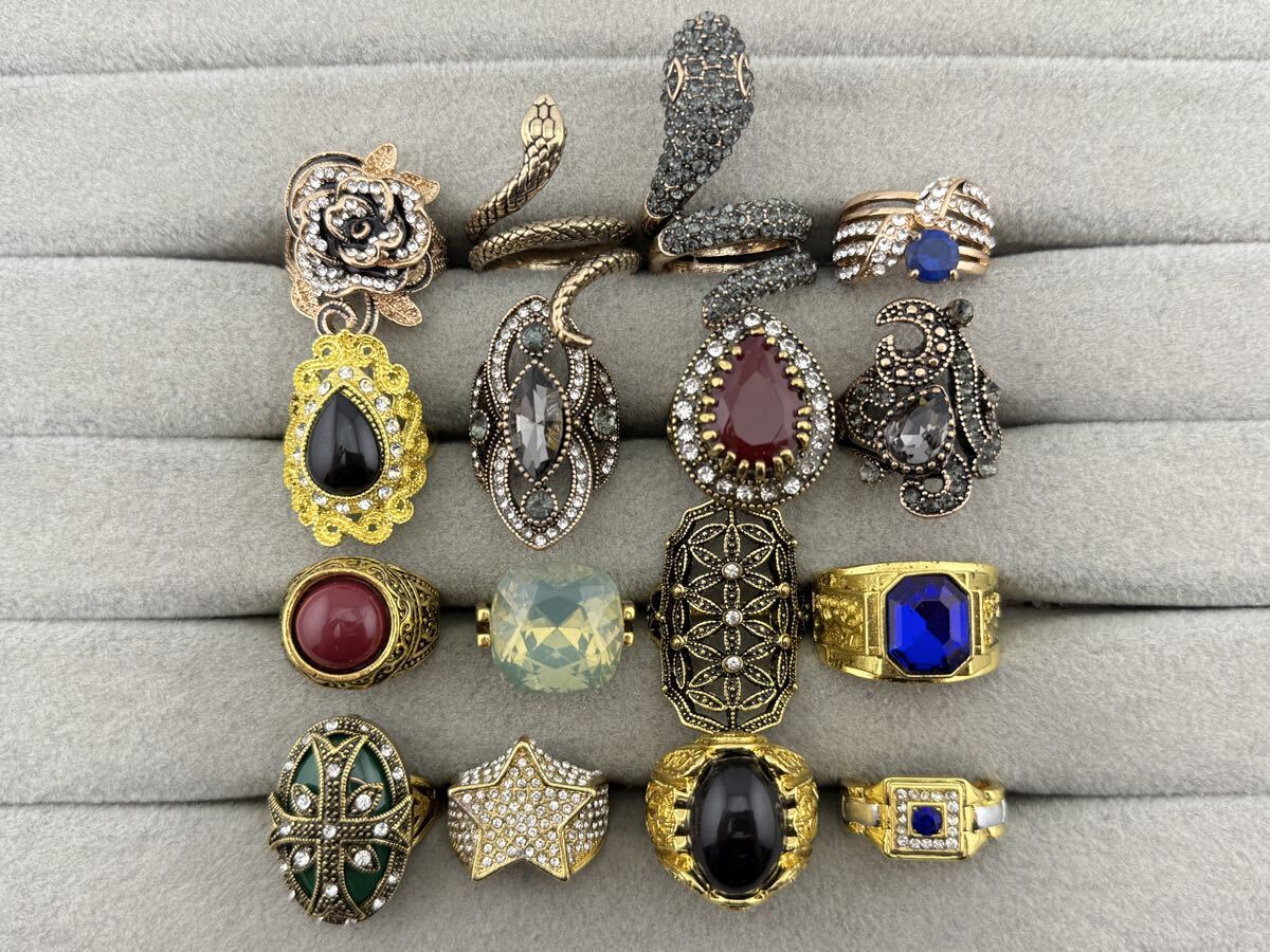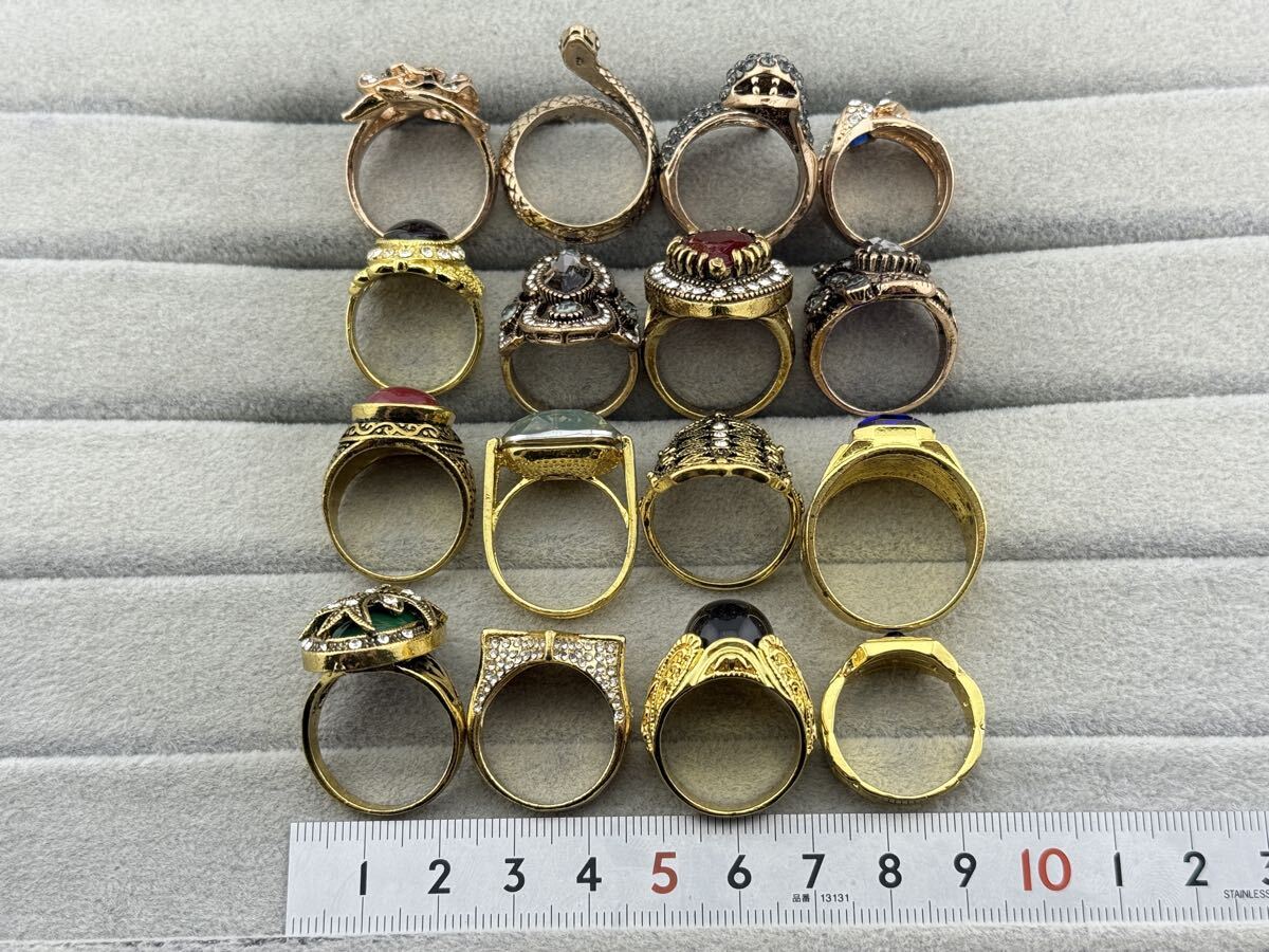 J543 ゴールドカラー ジルコニアなど 指輪 リング ヴィンテージ アクセサリー 925刻印含む 素材不明 イミテーション品 大量 まとめ 装飾品