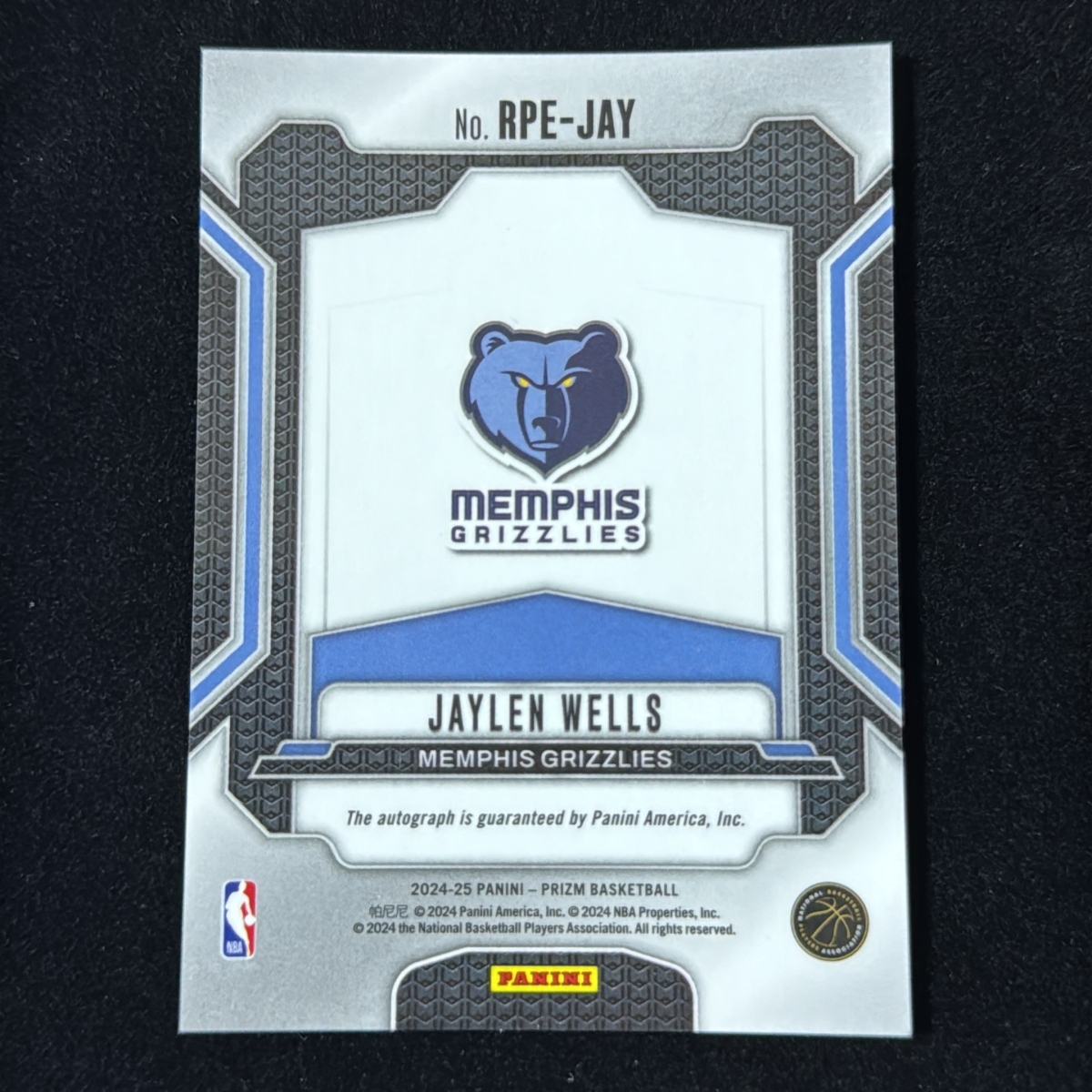 Jaylen Wells ジェイレン・ウェルズ Panini Prizm 2024-2025 Rookie RC Autograph Auto サイン 直筆 グリズリーズ Grizzlies