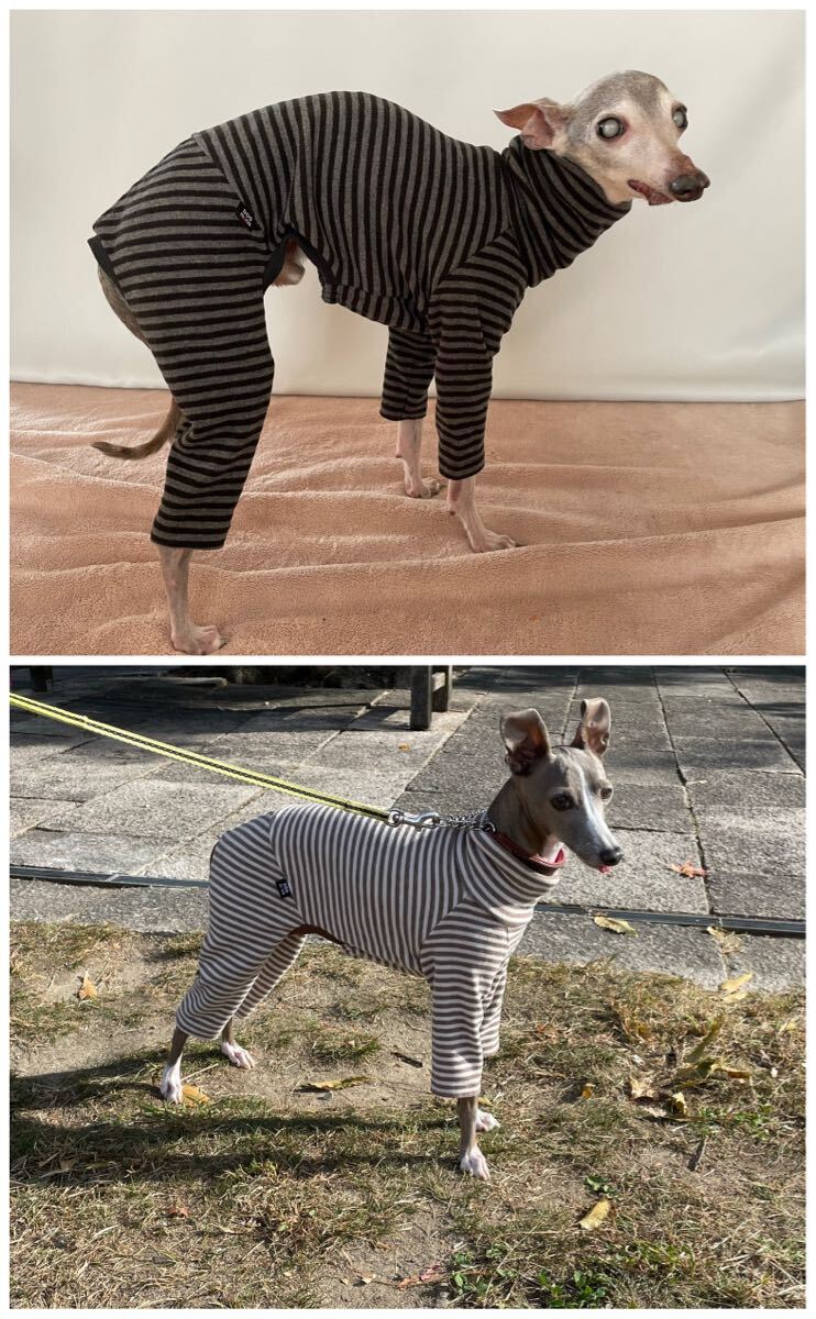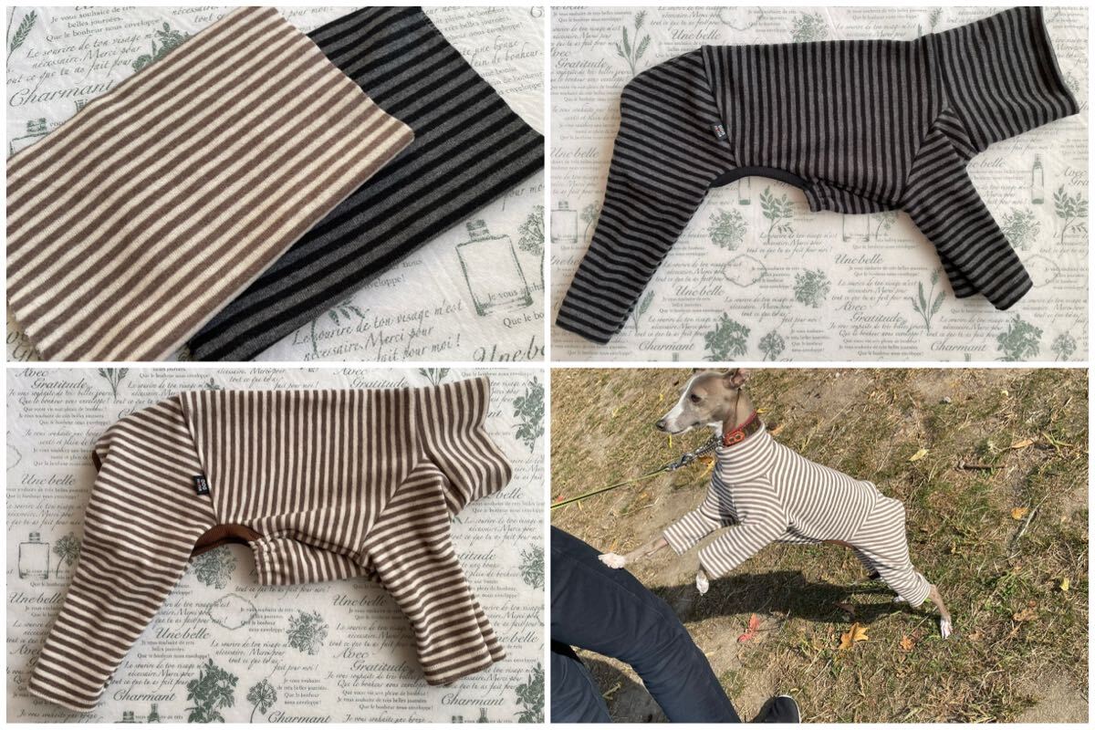 ![]() ![]() ★御覧頂きありがとうございます。最後まできちんとお読みください。 分からないことや不安なことは「質問/回答」より、必ず先に質問してください。 何度質問いただいても構いませんので、不安や疑問を抱えたままの入札は、ご遠慮ください。 落札いただいた後に、勘違いしてた/分からなかった/もっと分かりやすく書いてくれなど言われましても対応できかねます。 「最重要項目」 オーダーの流れが特殊です。 1・ご落札後ナビにて洋服のデザインやサイズ決定 2・決めたサイズとデザインで計算します。(計算方法は下記参照) 3・例えば、計算後洋服が1900円。即決900円の出品物の場合、1900-900で1000円の落札者様専用のオークションページを作成し、ナビにてご案内します。 4・ご案内した分のオークションも入札(落札)してください。 5・ご入金確認後、生地カットの作成に入ります 上記理由 落札者様には手数料などは一切関係ありません。手数料請求もありません。 出品者側(私)が落札していただいたらその分の手数料をヤフオクに支払うために上記で行います。出品者の「落札システム利用料」というものです。 ご縁があった際は順々に説明しご案内いたしますので、ご安心ください。 記載文章が長く細かいですが、安心してお取引きしていただく為、落札者様の愛犬にピッタリなお洋服を作る為に記載しておりますので、お手数ですが最後までお読みください。 読み間違い・勘違いされる方が多いです。少しでも不明な点は、入札頂く前にご質問下さい。 ①大変申し訳ありませんが、新規の方(ヤフオクの評価がゼロの方)、悪いの評価が多い方、評価を拝見してお取引に不安のある方は、入札削除をさせていただきます。即決の場合は、説明文を読んでないと捉え、落札者様都合の削除を行います。その際yahooより自動的に悪い評価(-1)がつくことをご理解ください。過去に何度も嫌な思いをしましたので、ご理解ください。 ②下記に発送方法がありますが、取引ナビにて発送方法・送料確認・合計金額の確認が完了するまでは、支払い手続きはしないようにお願いいたします。 ③お取引は迅速丁寧を心がけておりますが、ナビの返信が夜中や朝方になることもあります。 ④オーダーが混みあっている状況の為、ご入金確認後、3日~最大14日以内の発送になります。複数着オーダーの場合は異なります。その都度ご案内いたします。急いで欲しい/〇日までにという希望の方は入札をご遠慮ください。もしくは、先に質問欄よりお問い合わせください。 定形外郵便やレターパックでの発送の場合は、郵便局持込の為、平日のみの発送となります。 万が一、子供が体調を崩したり、犬が体調を崩したりと予期せぬことが起こりましたら少しお時間頂く場合もございますので、ご了承いただける方でお願いいたします。 ⑤生地在庫を確認しますので、多頭飼いでおそろい希望(複数落札)や、胴まわり50cm以上。着丈35cm以上の場合は、オークション終了前に、質問欄よりお願いいたします。 質問事項:袖やパンツなどの有無・首/胴/背中丈/袖やパンツの長さ/を必ず書いてください。 以上、始めに細かい記載が多いですが、ご理解いただける方のみでよろしくお願いいたします。 **ワンコ服をフルサイズオーダーで作製しております** フルオーダーになりますので、サイズを測っていただいたりとお手数をおかけしますがご協力ください。やり取りが細かくナビ回数も一般的な回数より多くなります。お付き合いいただける方でお願いします。 また、ハウンド用の型紙も御座いますので、イタグレ・チャイクレ・ウィペットも作成可能です。他犬種と型紙が違いますので、必ず犬種をお知らせください。 サイズやデザインによっては、希望カラー・オプションデザイン・生地の変更などをしていただく場合がございます。心配な方は、先に質問回答よりお問い合わせください。 ~出品お洋服について~ 出品(落札価格)は、「袖なしのTOPS」になります。 袖/パンツ/ハイネックなどは、ご希望の方のみの「追加オプション」になります。 質の良い生地を選んでおりますので、お洋服の見栄えもよく、また型崩れなどしにくいです。 個人ブランドのタグが付きます。 使用生地:起毛ボーダーニット 希望の布地カラーをお知らせください。 生地カラー:①ベージュ/②チャコールグレー *縁取りなどのリブニットは様々なカラーを持ってますので、要打ち合わせ。 画像サンプル 追加オプション:前足袖・パンツ・ハイネックあり オプションは加算対象です。 料金グループ(区分A/B)は、下記サイズ表参照ください。(説明文、中間よりもう少し下にあります。) Aグループ フードorハイネック・・・+700 *ハイネックの長さ、11㎝以上、5㎝毎に+300 袖・・・・・+700 パンツ・・・+1000 *袖とパンツの長さ、11㎝以上、5㎝毎に+300 使う布地の量が大きく異なりますのでご了承ください。 例:袖10㎝・パンツ12㎝の場合、パンツのみ+300。袖は加算なし。 Bグル