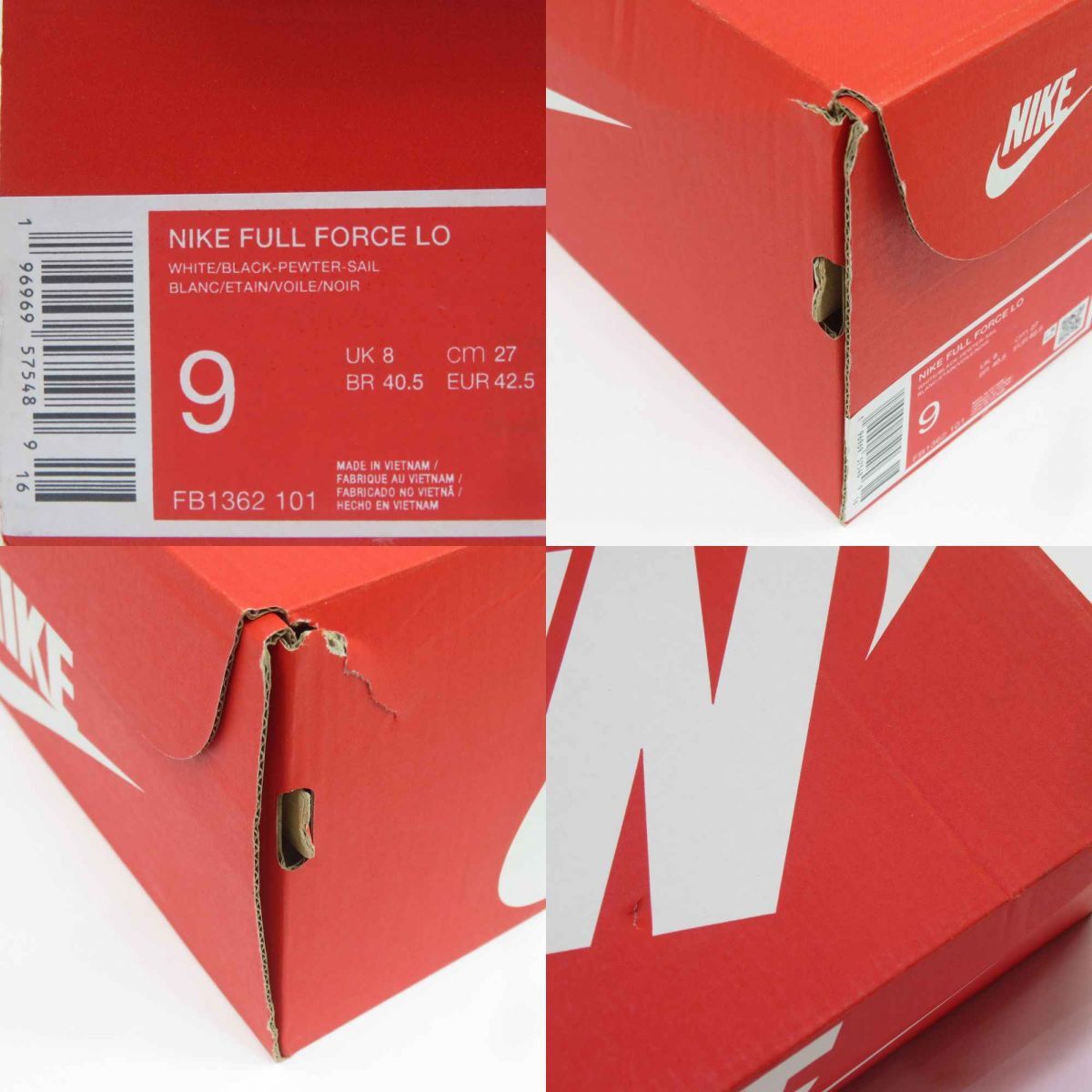 153s【未使用】NIKE ナイキ FULL FORCE LO フル フォース ロー FB1362-101 US9 27cm 箱有 □付属品:外箱、タグ ※画像にあるもので全てです。 □型番:FB1362-101 □サイズ:27cm □状態:未使用 ・タグ付で使用された形跡が見られない為、未使用と判断しています。 ・接着剤跡が見受けられます。 ※保管による初期傷・汚れなどある場合が御座います。 未使用品ではありますが、二次流通品の新古品になります為、 完品をお求めの方はご購入をご遠慮くださいますようお願い致します。 ・外箱には保管に伴うスレ、キズ、汚れ、ヘコミ、 破れ、小さな穴などの傷みが見受けられます。 ※モニターの環境により実物と画像の色が違うように見える場合があります。 |